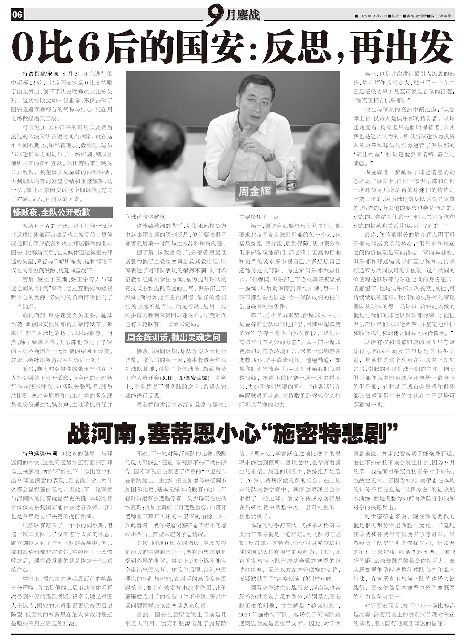 0比6后的国安:反思,再出发