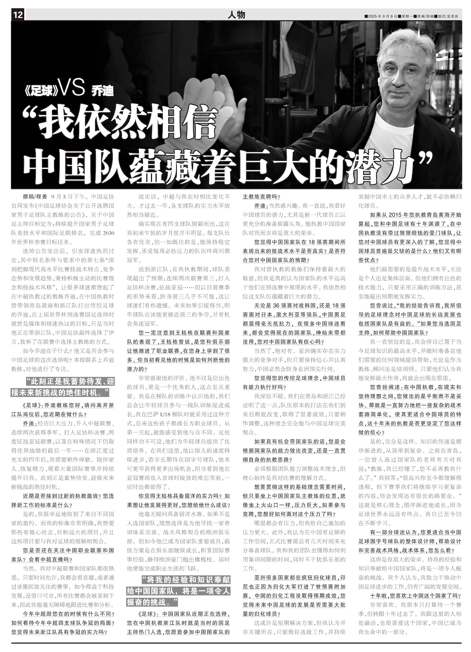 《足球》VS乔迪 “我依然相信中国队蕴藏着巨大的潜力”