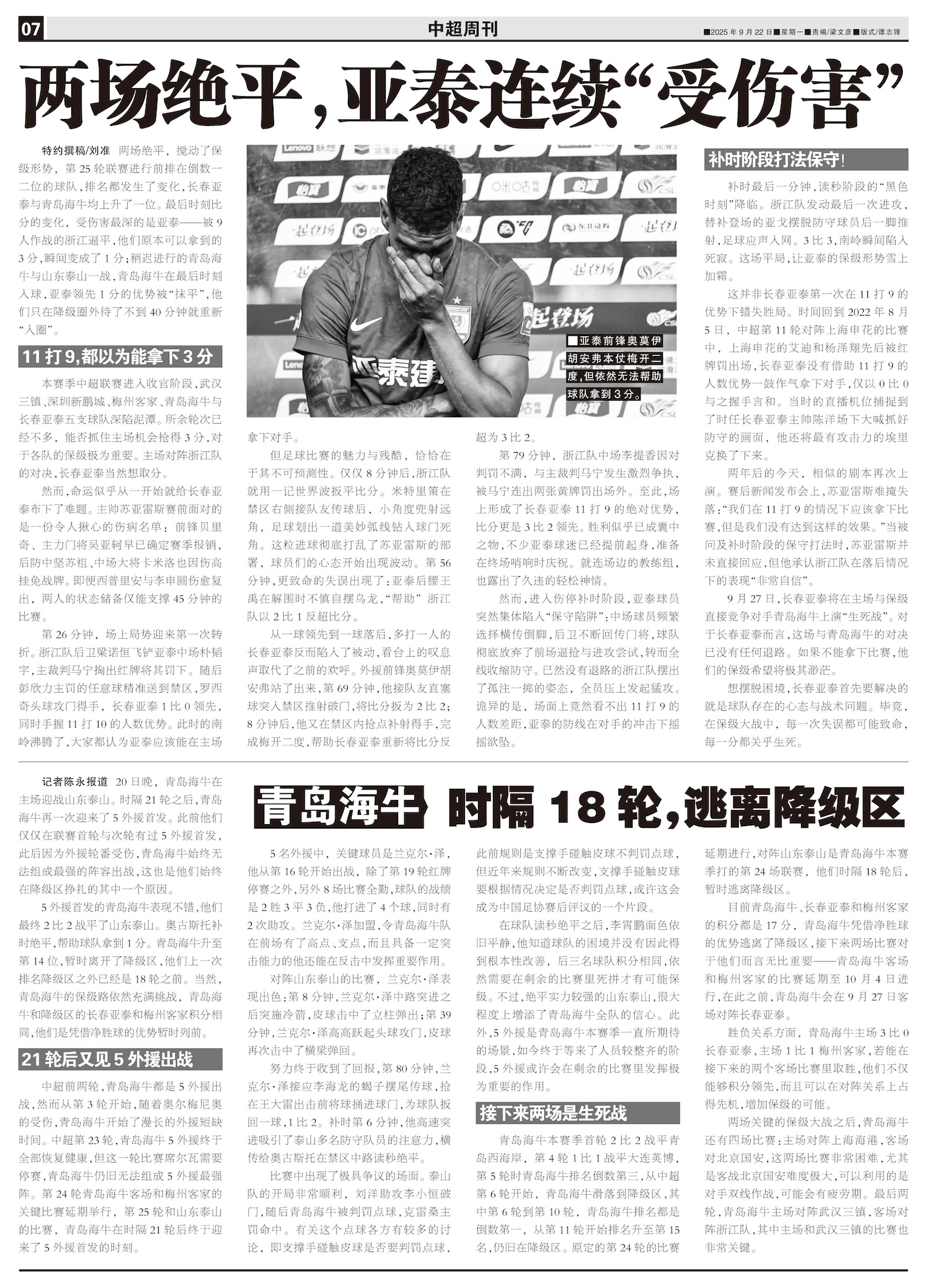 两场绝平,亚泰连续“受伤害”