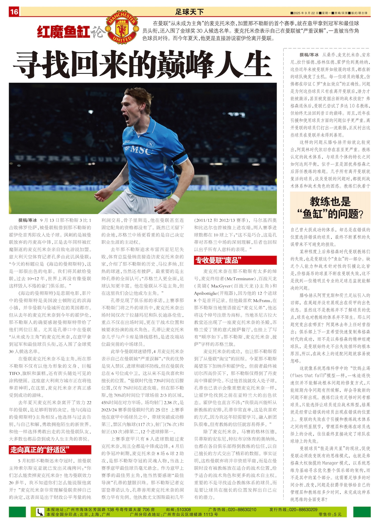 红魔鱼缸论在曼联“从未成为主角”的麦克托米奈,加盟那不勒斯的首个赛季,就在意甲拿到冠军和最佳球员头衔...