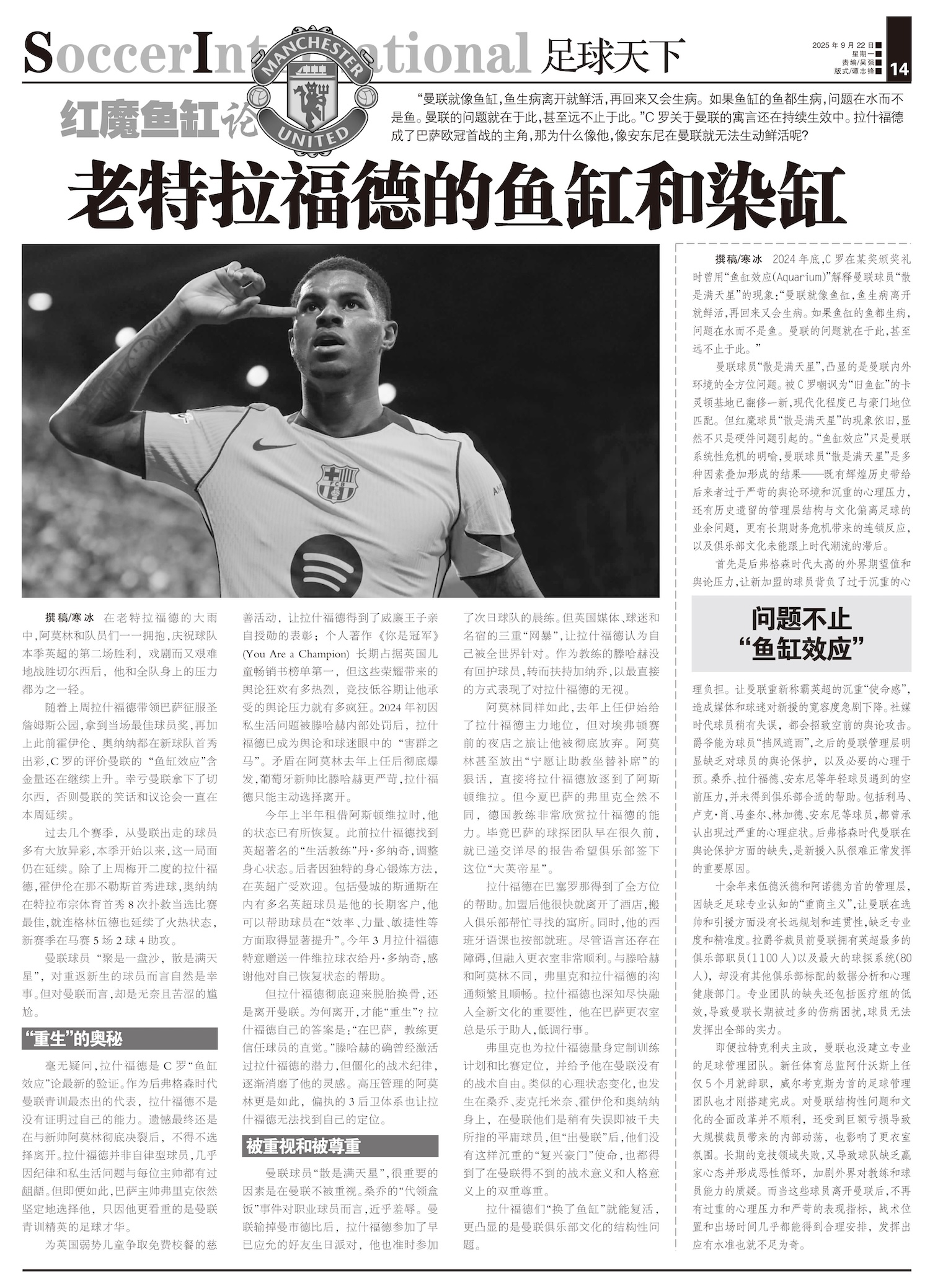 红魔鱼缸论“曼联就像鱼缸,鱼生病离开就鲜活,再回来又会生病。如果鱼缸的鱼都生病,问题在水而不是鱼。曼...