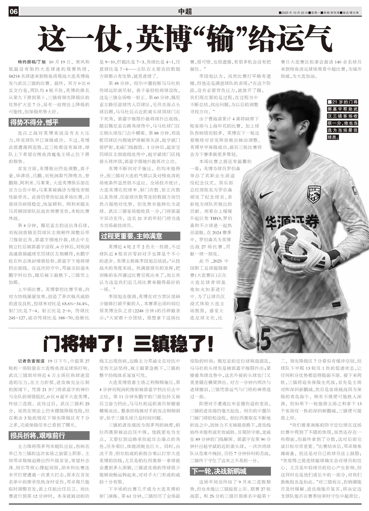 门将神了!三镇稳了!