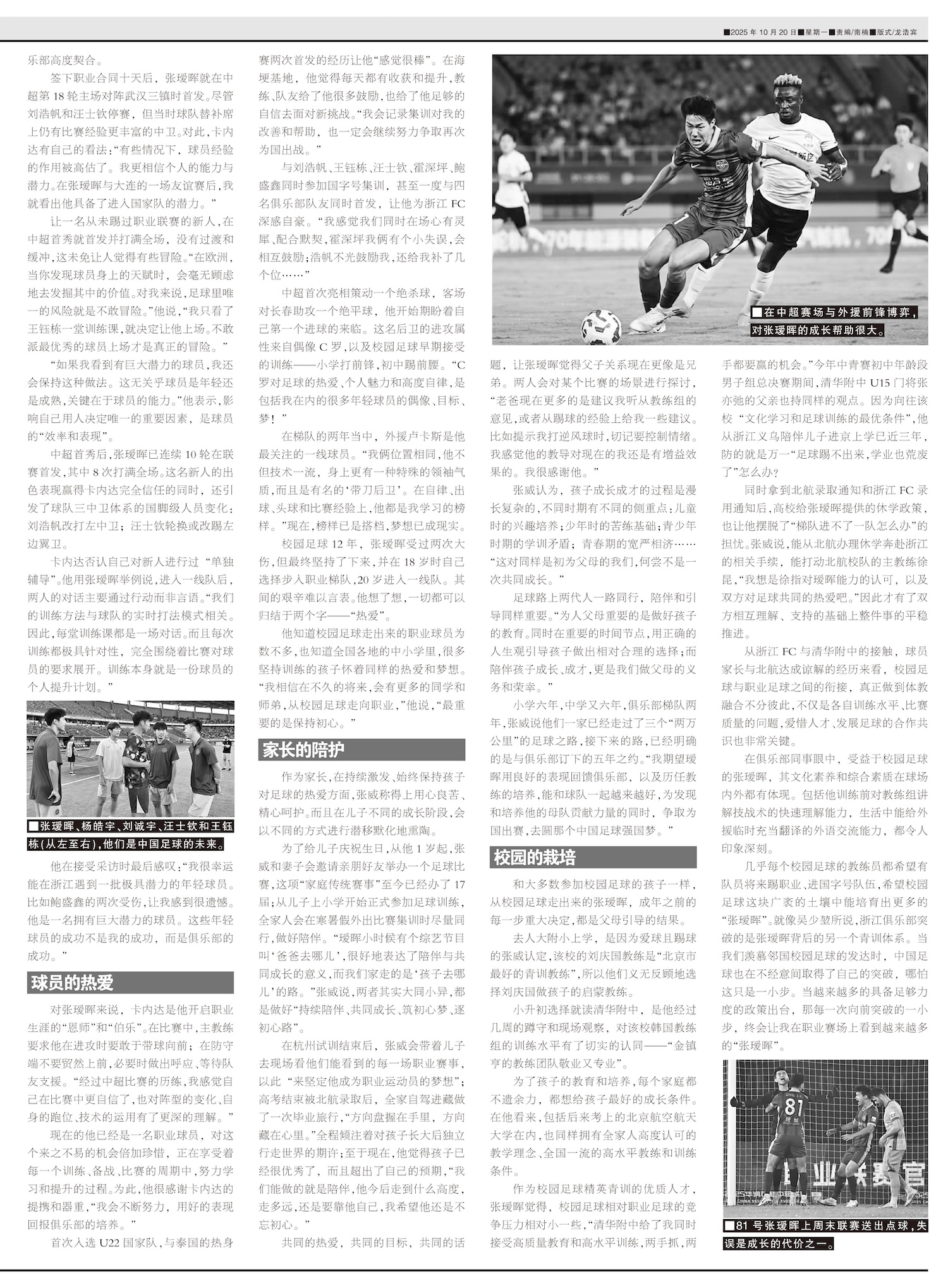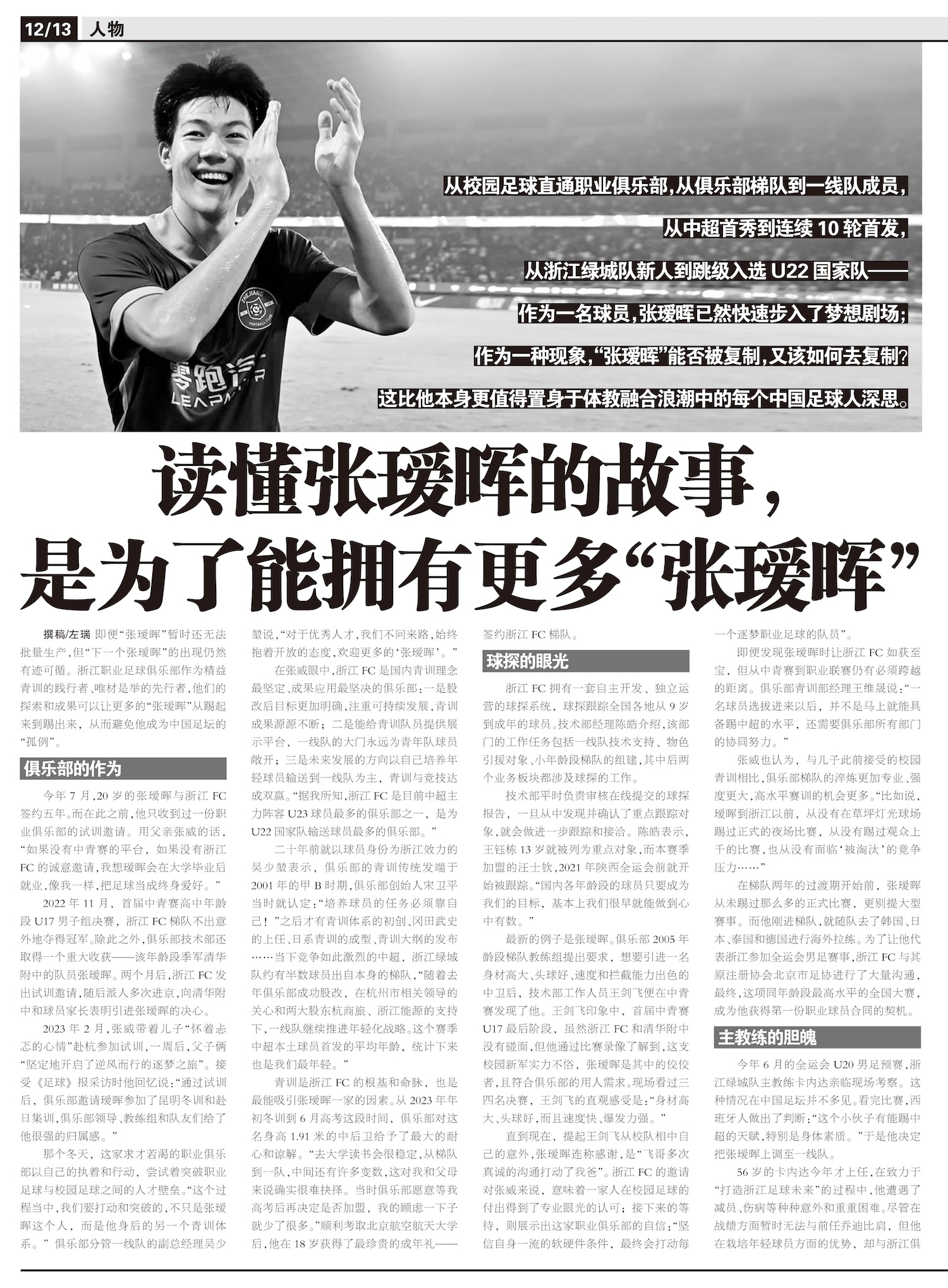 从校园足球直通职业俱乐部,从俱乐部梯队到一线队成员,从中超首秀到连续10轮首发,从浙江绿城队新人到跳...