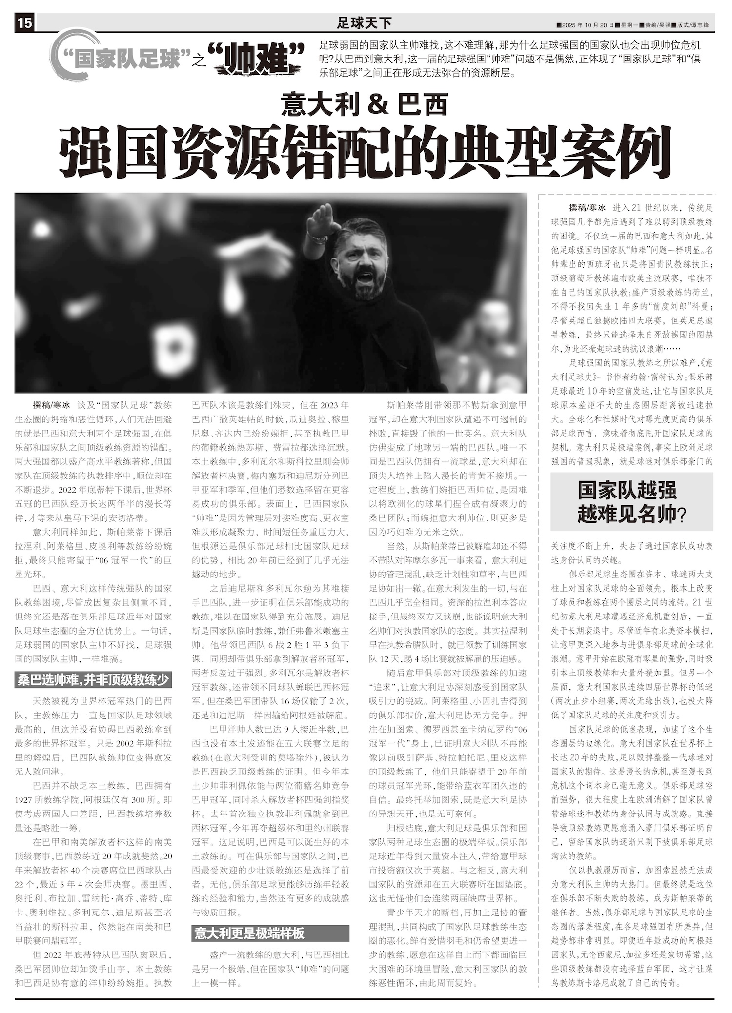 进入21世纪以来,传统足球强国几乎都先后遇到了难以聘到顶级教练的困境。不仅这一届的巴西和意大利如此,...