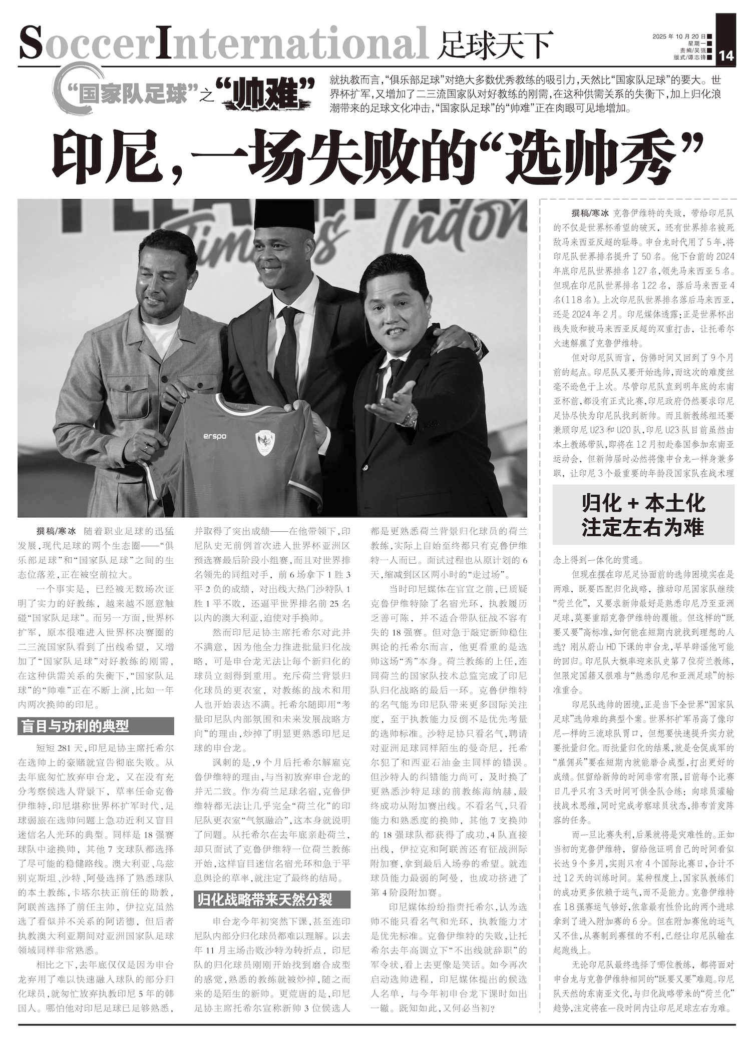 克鲁伊维特的失败,带给印尼队的不仅是世界杯希望的破灭,还有世界排名被死敌马来西亚反超的耻辱。申台龙时...