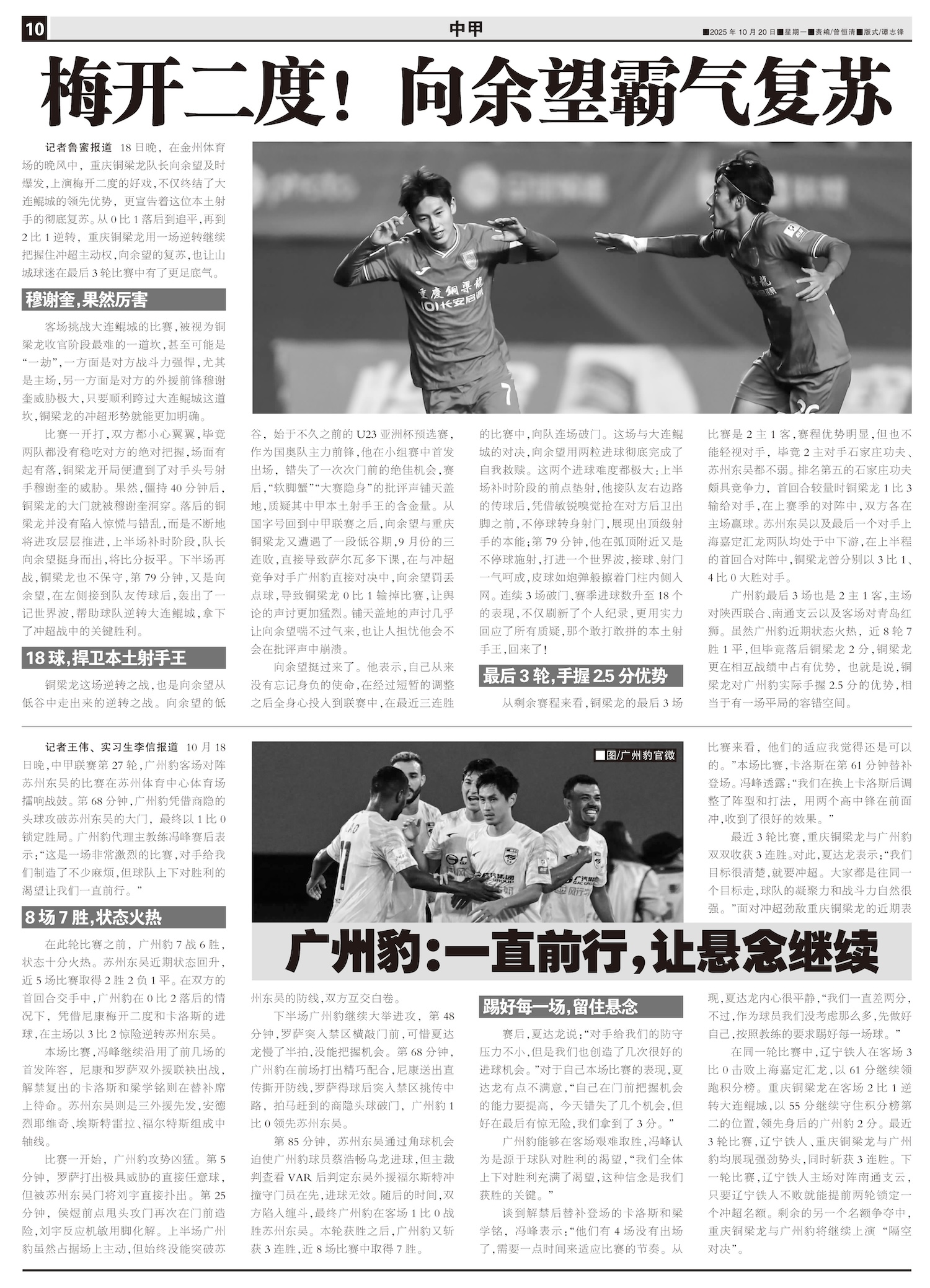 10月18日晚,中甲联赛第27轮,广州豹客场对阵苏州东吴的比赛在苏州体育中心体育场擂响战鼓。第68分...