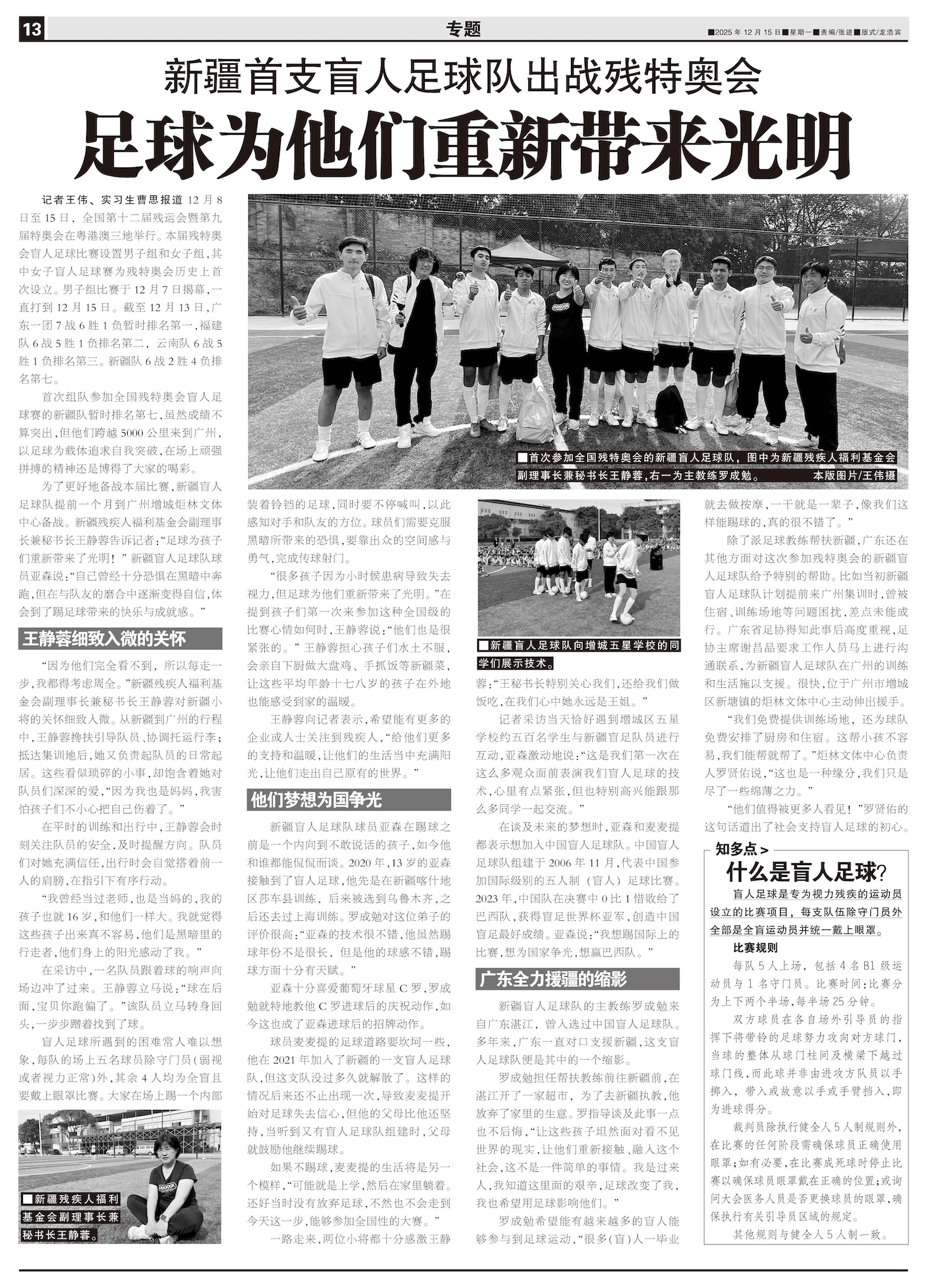 新疆首支盲人足球队出战残特奥会 足球为他们重新带来光明