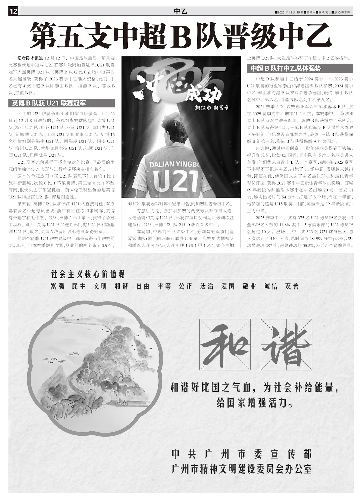 12月12日,中国足球最后一项重要比赛也就是中冠与U21联赛升级附加赛进行,U21联赛冠军大连英博U...