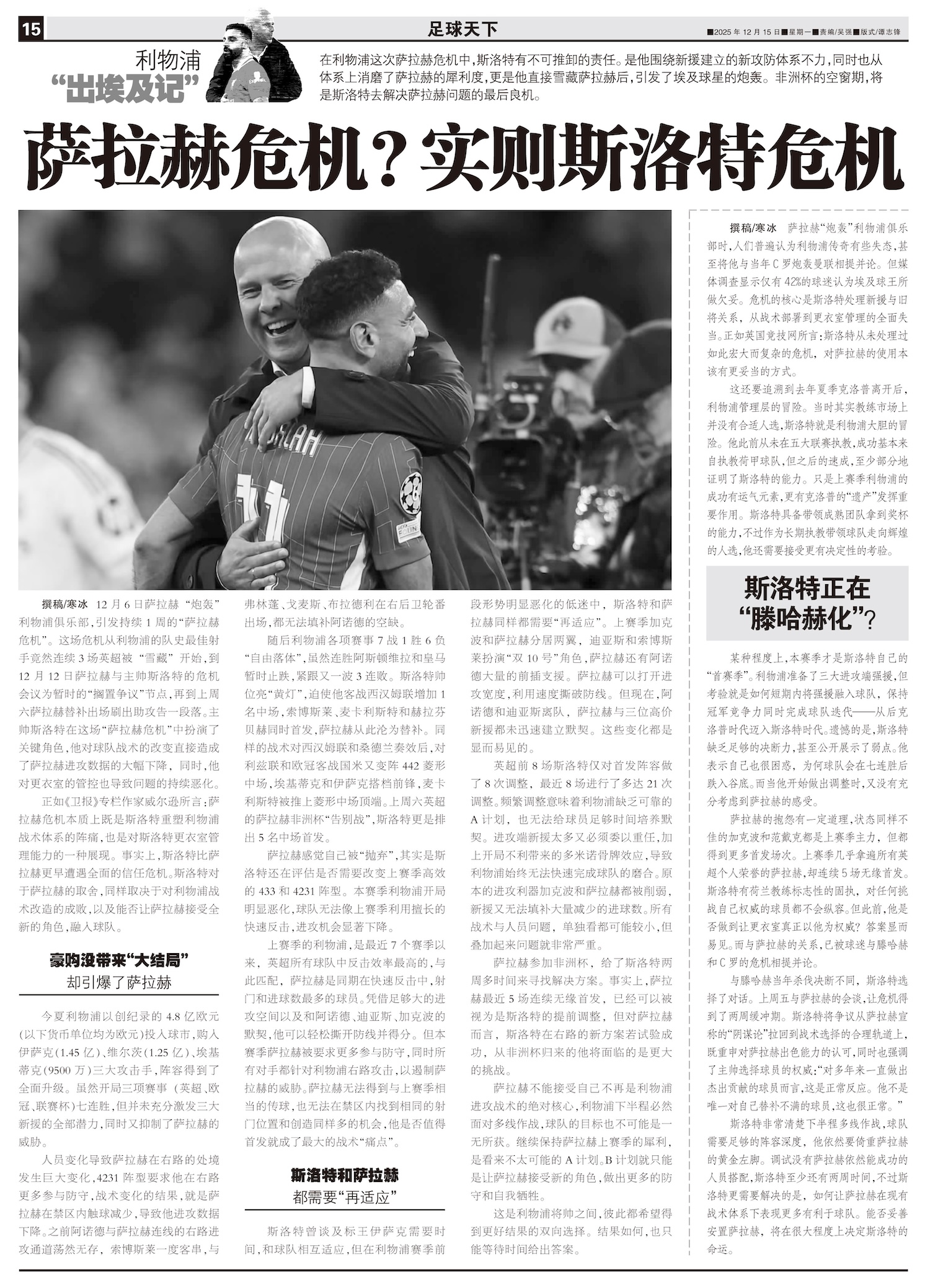 利物浦“出埃及记” 在利物浦这次萨拉赫危机中,斯洛特有不可推卸的责任。是他围绕新援建立的新攻防体系不...