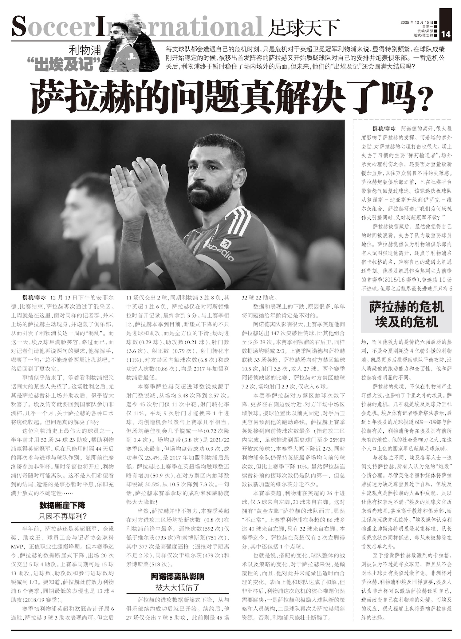阿诺德的离开,很大程度影响了萨拉赫的发挥。而若塔的意外去世,对萨拉赫的心理打击也很大。场上失去了习惯...