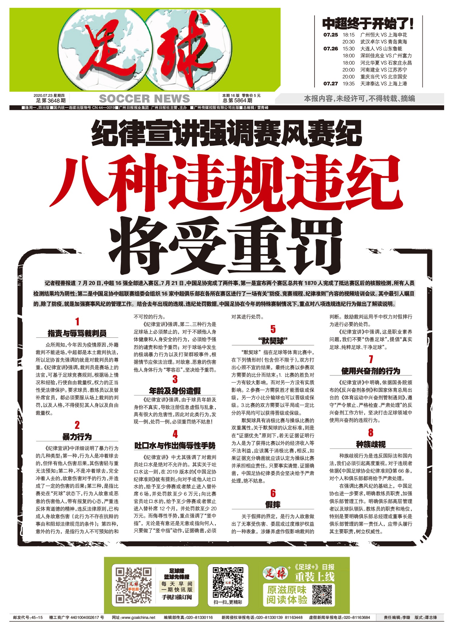 【封面报道】八种违规违纪将受重罚;【要闻】揭幕战就是“超级杯”;【专题】想拿冠军必须做好面对困难的准备;【足球天下】尤文本周夺冠?意甲欧冠名额有“玄机”?;