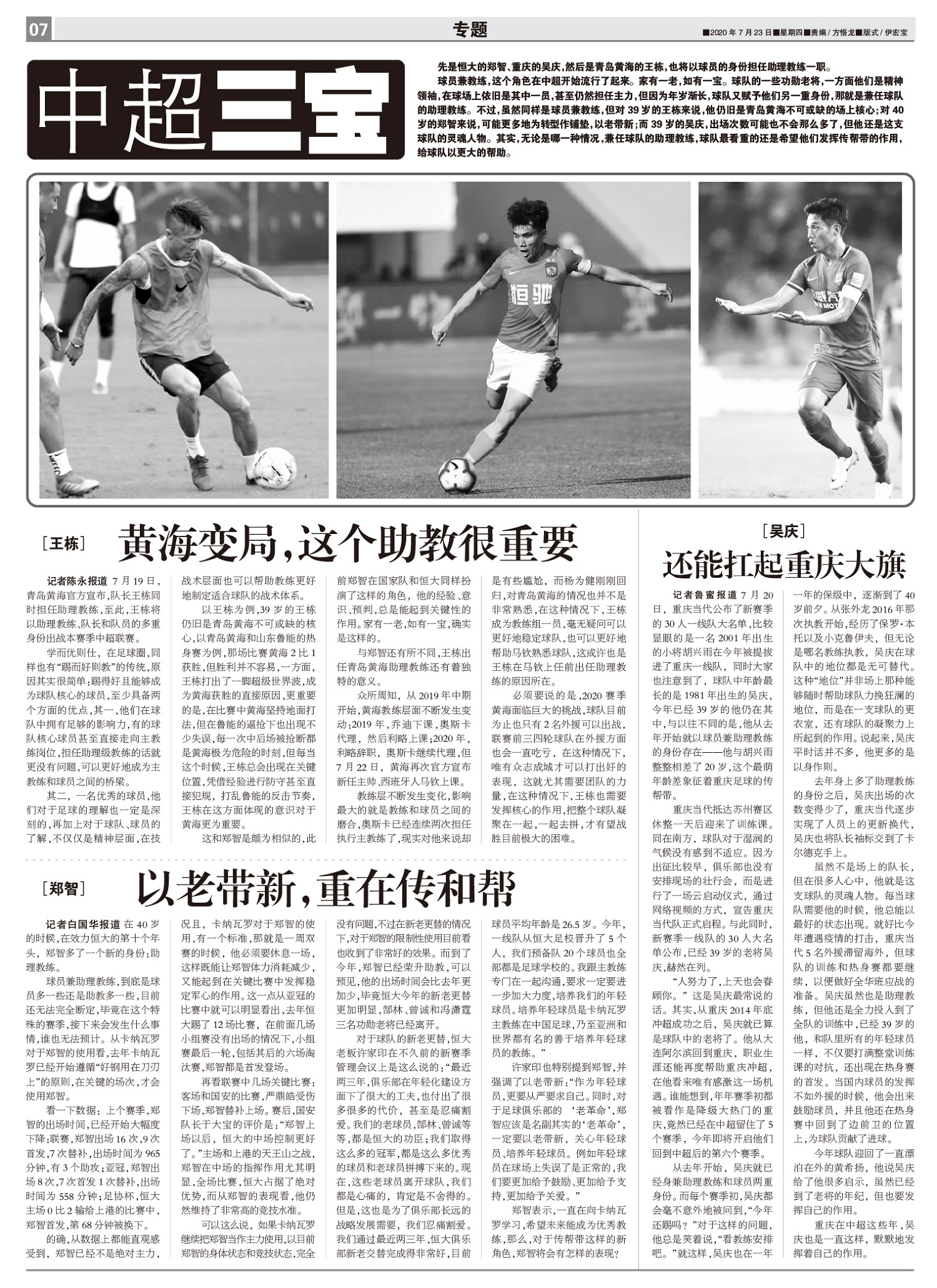 先是恒大的郑智、重庆的吴庆,然后是青岛黄海的王栋,也将以球员的身份担任助理教练一职。
