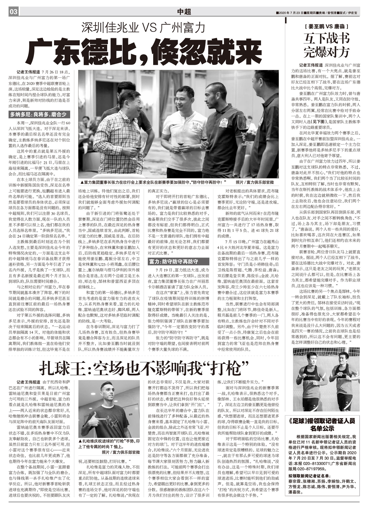 7月26日18点,深圳佳兆业与广州富力的第一场广东德比,在2020赛季中超联赛首轮上演。这场较量,深...