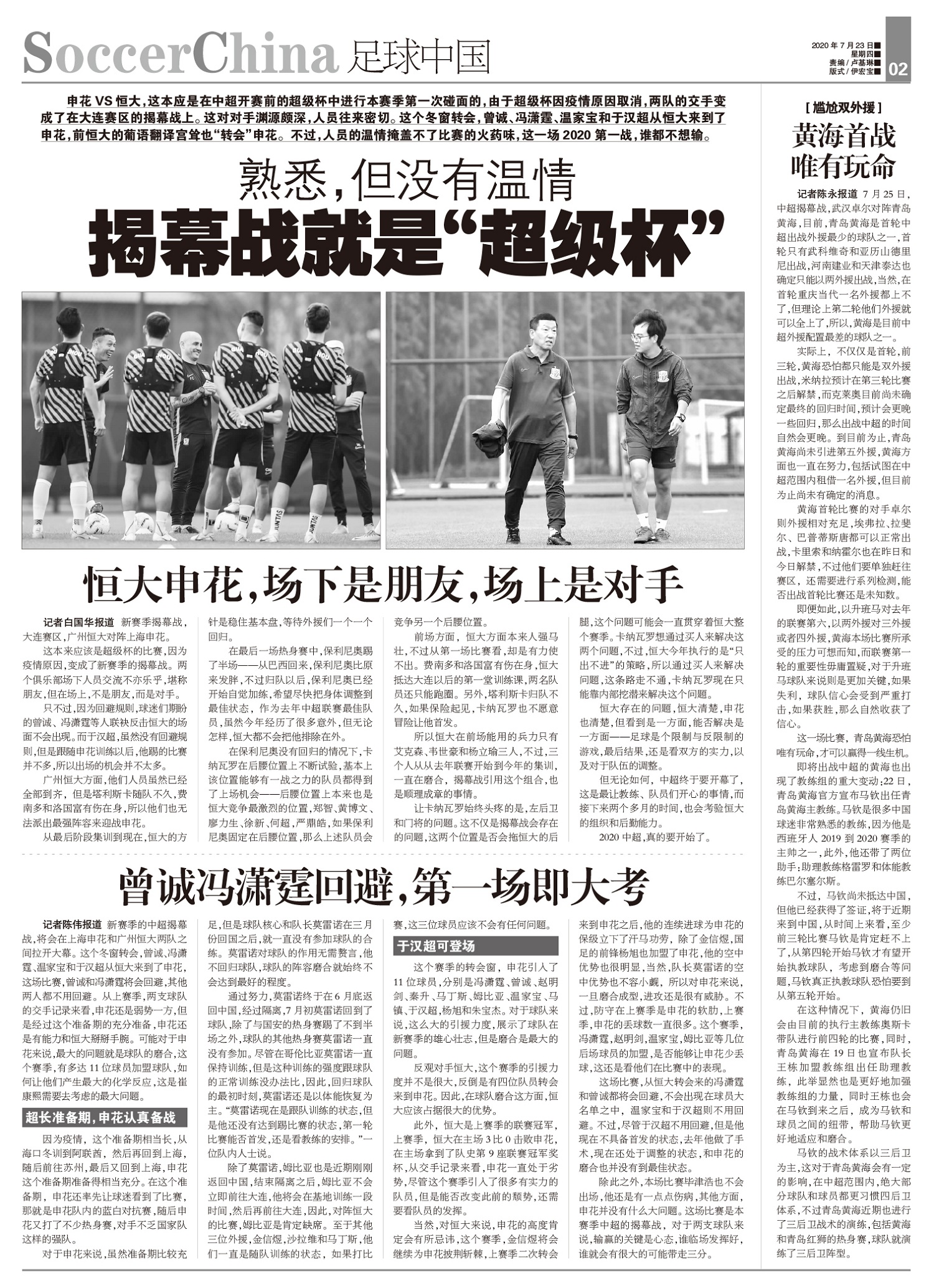 申花VS恒大,这本应是在中超开赛前的超级杯中进行本赛季第一次碰面的,由于超级杯因疫情原因取消,两队的...