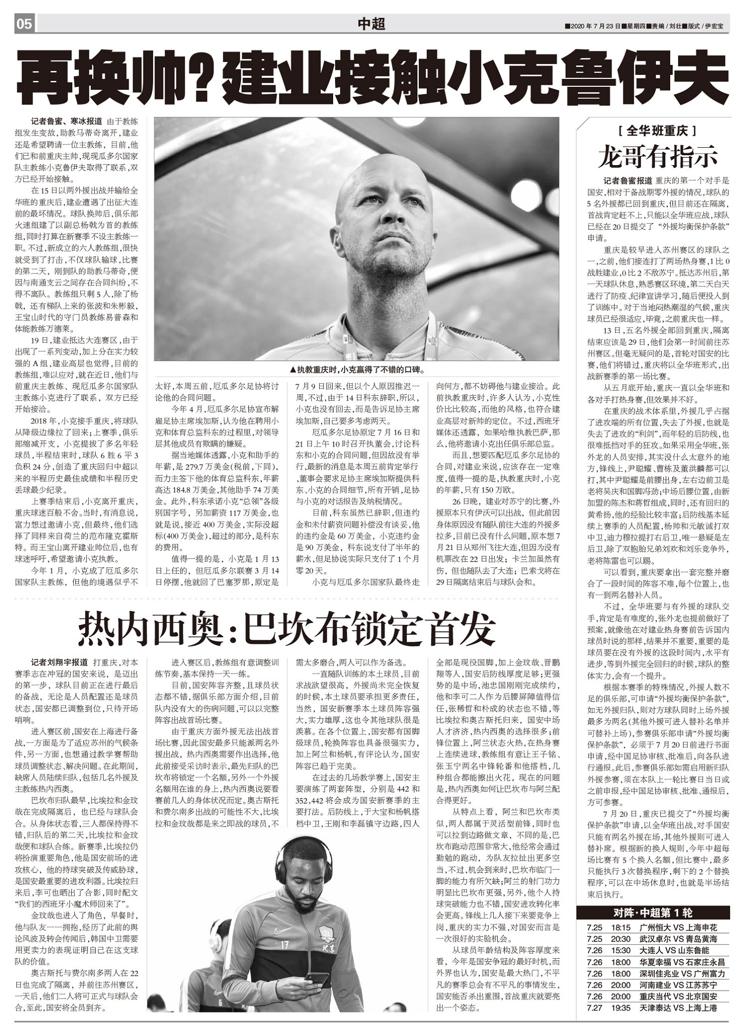 重庆的第一个对手是国安,相对于备战期零外援的情况,球队的5名外援都已回到重庆,但目前还在隔离,首战肯...