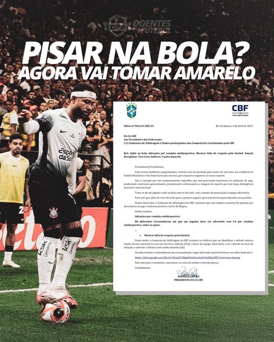 巴西出台的新规则又被称为“孟菲斯规则”,是因2025年3月28日圣保罗州决赛次回合,科林蒂安前锋孟菲斯·德佩双脚踩球挑衅帕尔梅拉斯球员,引发双方球员冲突。4月4日巴西足协仲裁委员会发布2025年第964号公告,禁止球员做出双脚踩球动作。巴西足协声称新规遵循了一周前南美足联的指示,旨在减少激化冲突的挑衅行为。就在3月30日的南美U17锦标赛,巴西对阵玻利维亚时两队均有1名球员因双脚踩球动作被黄牌警告。