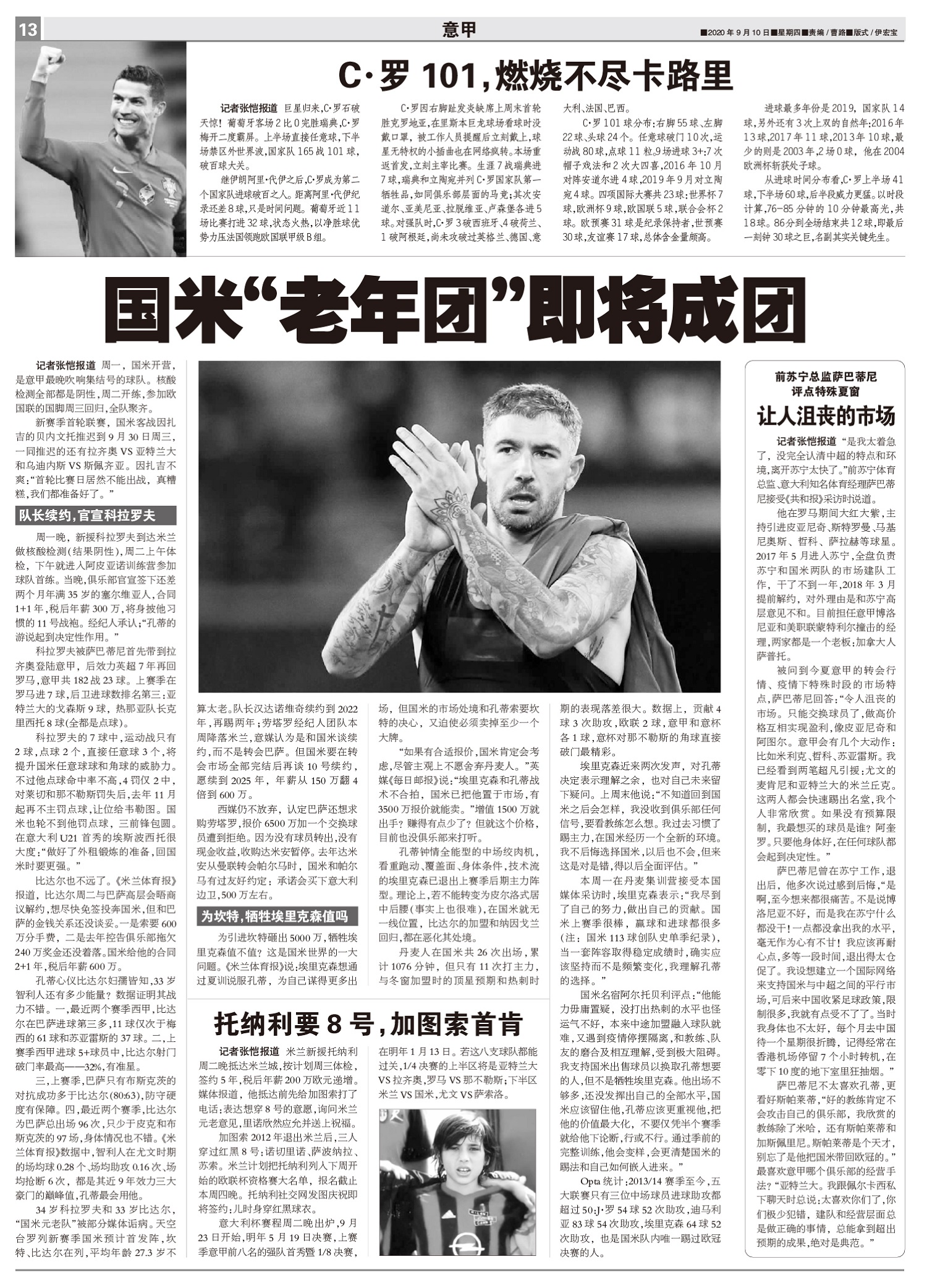 “是我太着急了,没完全认清中超的特点和环境,离开苏宁太快了。”前苏宁体育总监、意大利知名体育经理萨巴...