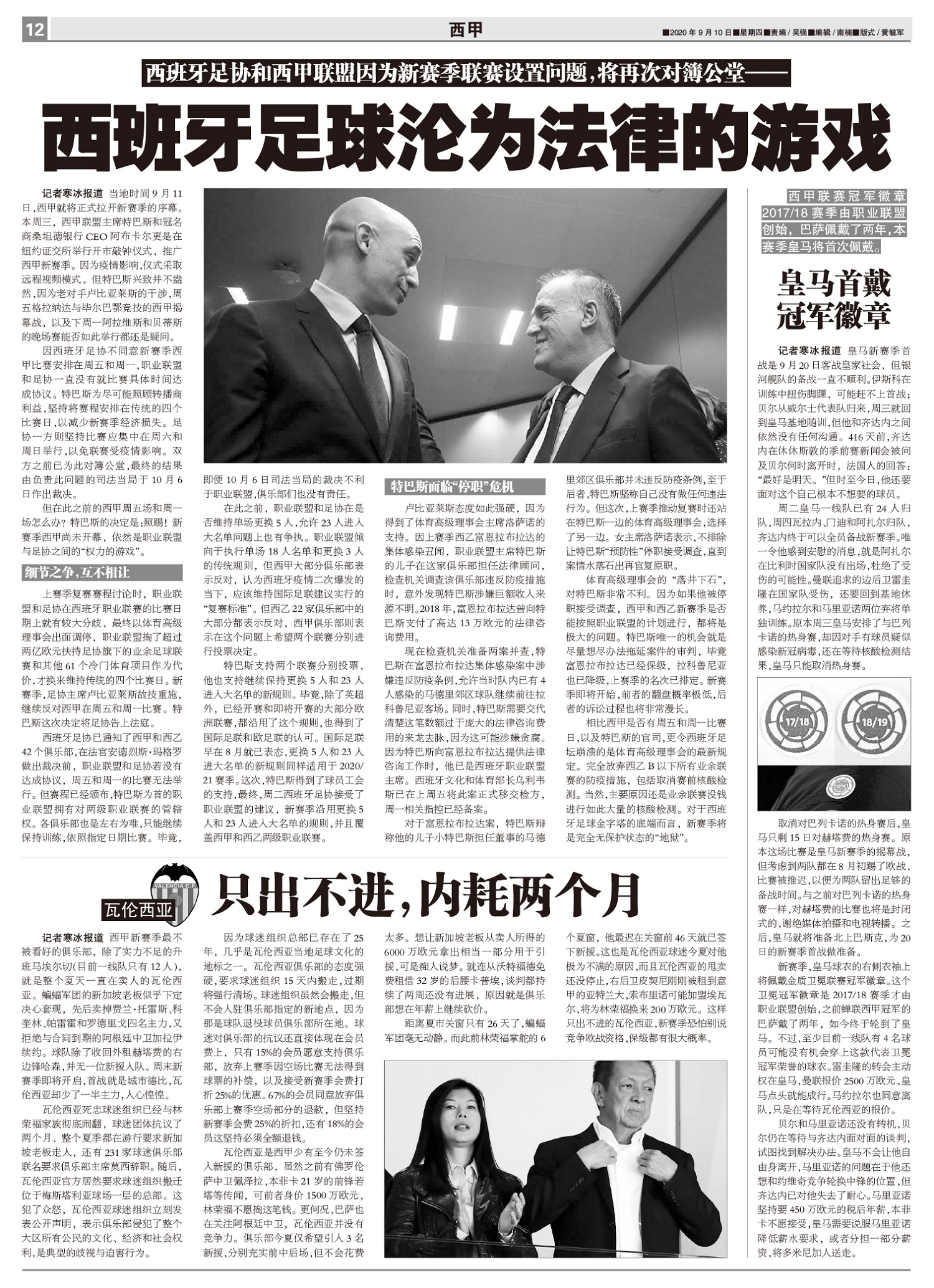 当地时间9月11日,西甲就将正式拉开新赛季的序幕。本周三,西甲联盟主席特巴斯和冠名商桑坦德银行CEO...