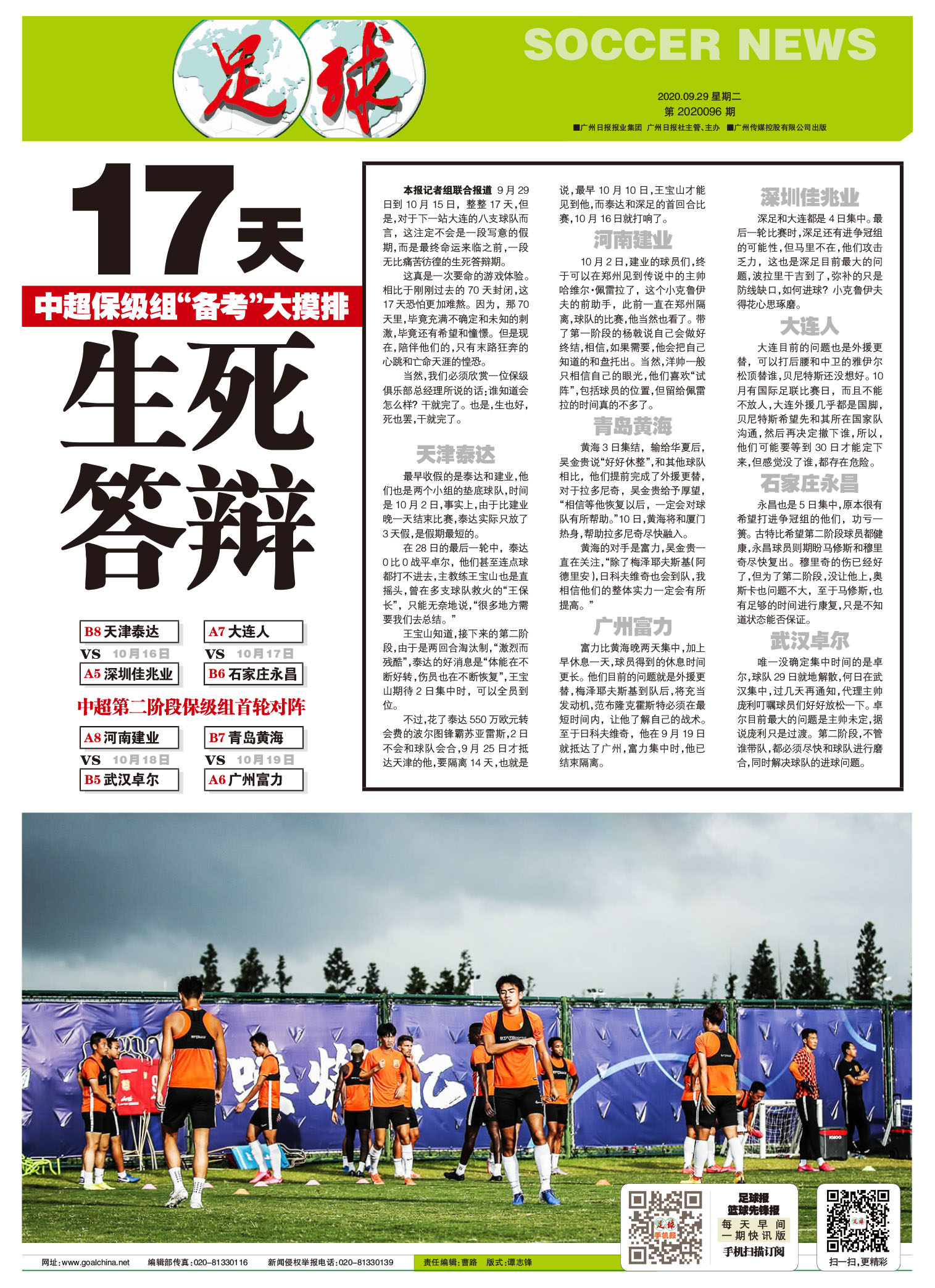 【封面报道】17天生死答辩;【要闻】感谢“加纳梅西”, 卓尔避开了大连人!;【专题】想看高拉特打恒大?对不起,不可能发生!;【足球天下】无足球,就芭蕾卡瓦尼诗意的“失业生活”;
