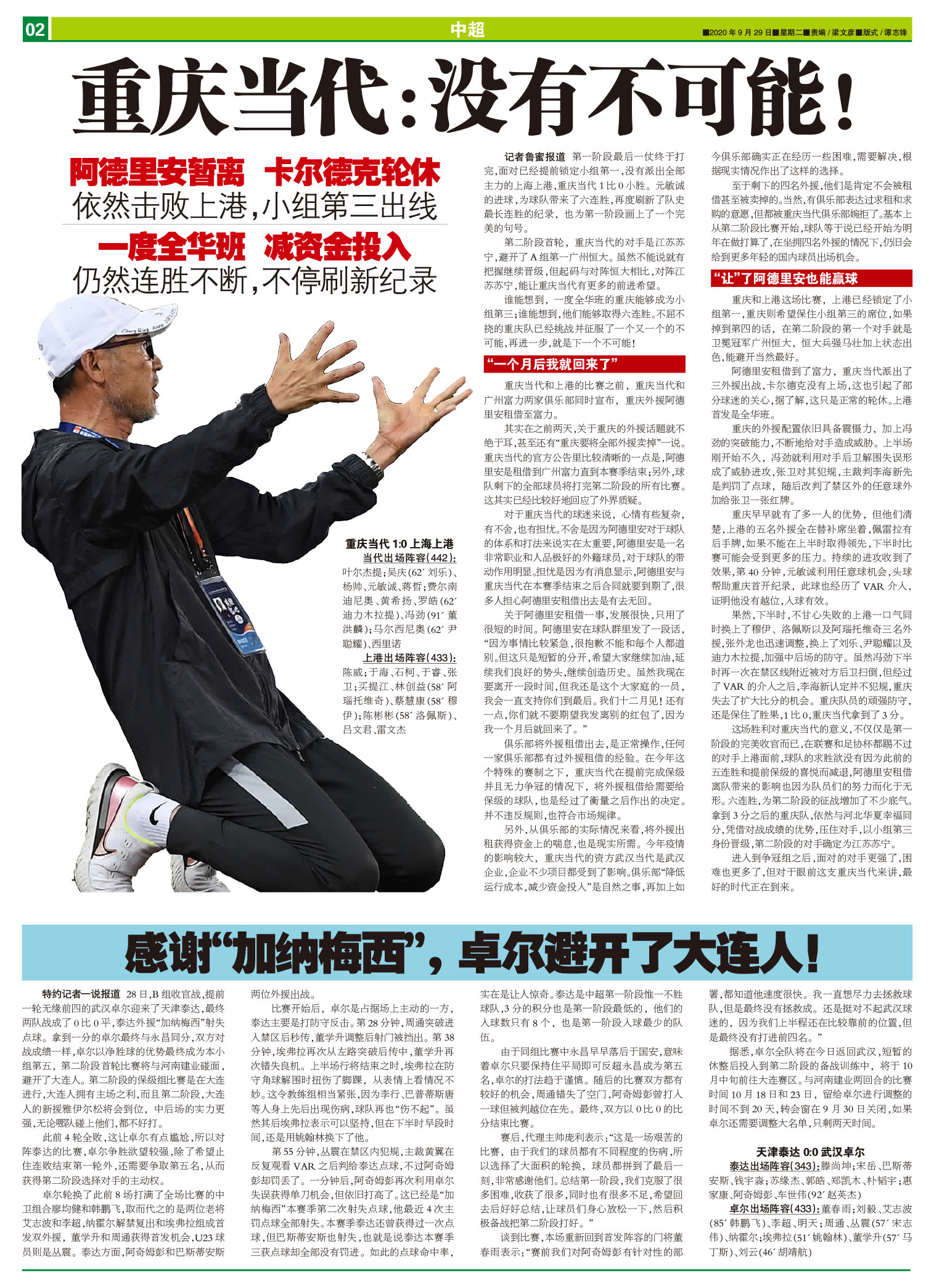 阿德里安暂离 卡尔德克轮休依然击败上港,小组第三出线一度全华班 减资金投入仍然连胜不断,不停刷新...