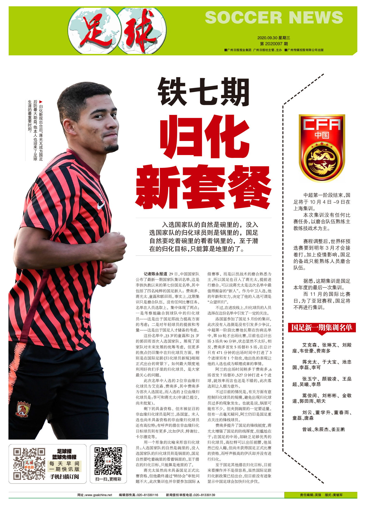 【封面报道】铁七期,归化新套餐;【要闻】铁军新兵报到,请入列;【专题】U23球员检阅,最佳阵容大赏;【足球天下】场均3.7球!领跑五大联赛。英超为什么这样疯?;