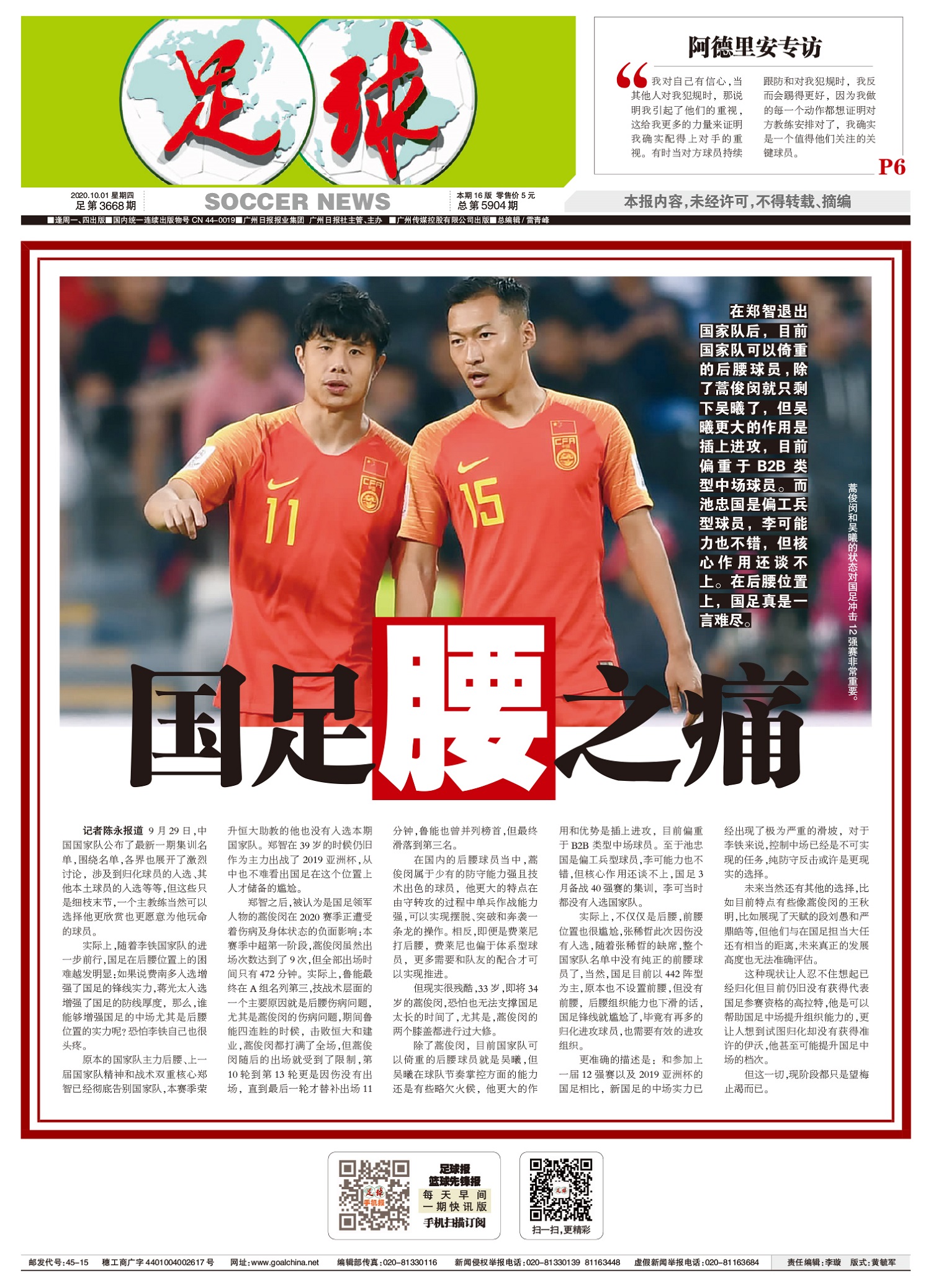 【封面报道】国足腰之痛;【要闻】新国足两头强中间弱;童磊:贝尼特斯帮我抠细节;【专题】用“双外援”阵容挤进争冠组;【足球天下】马塔拉佐,攻势足球“精算师”;