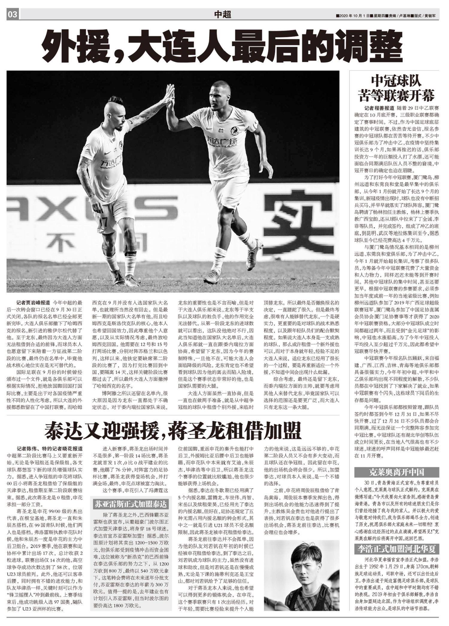中超第二阶段比赛马上又要重新开始,无论是争冠组还是保级组,各支球队都想签下新的球员增强球队实力。据悉...