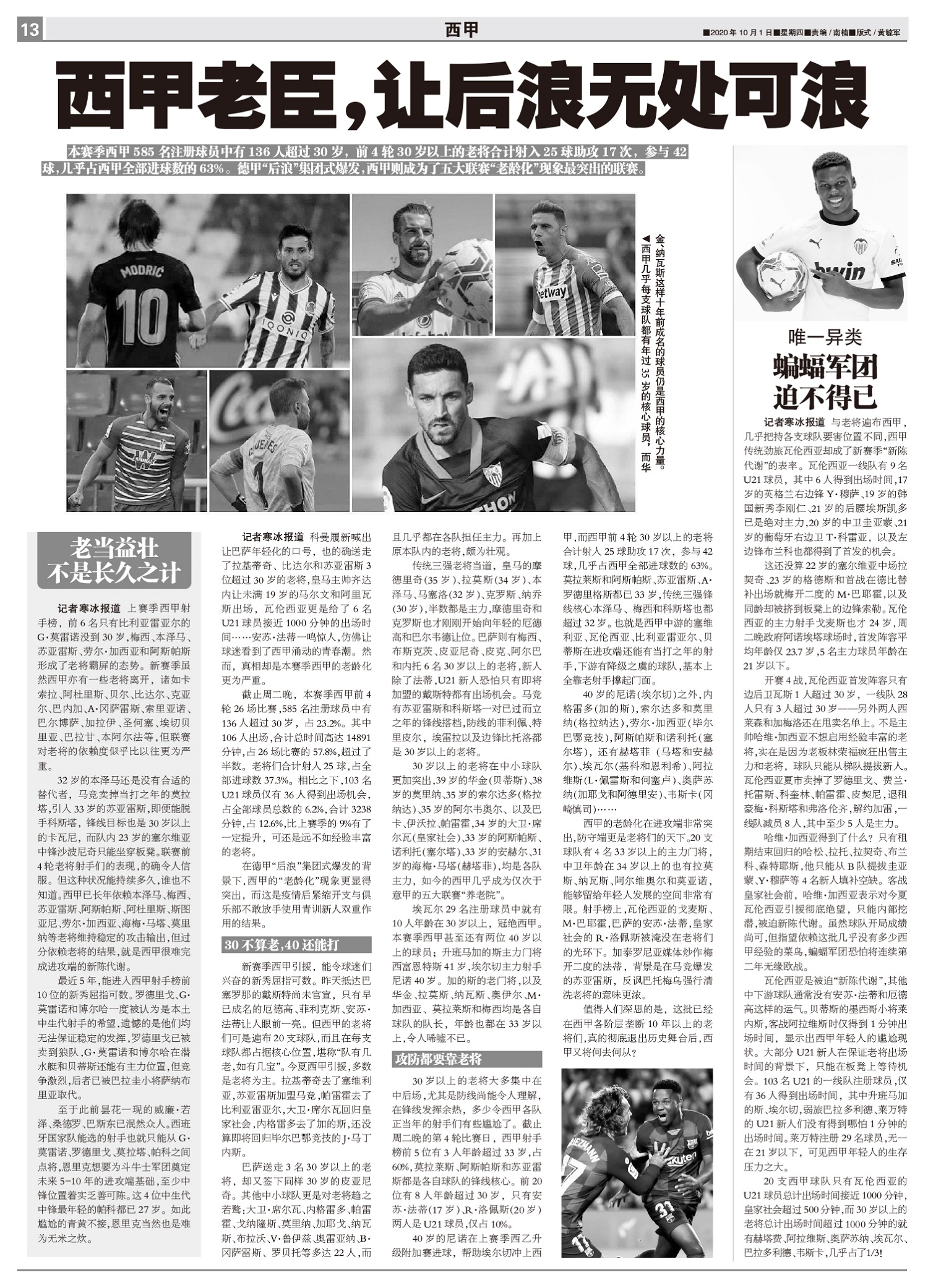 本赛季西甲585名注册球员中有136人超过30岁,前4轮30岁以上的老将合计射入25球助攻17次,参...