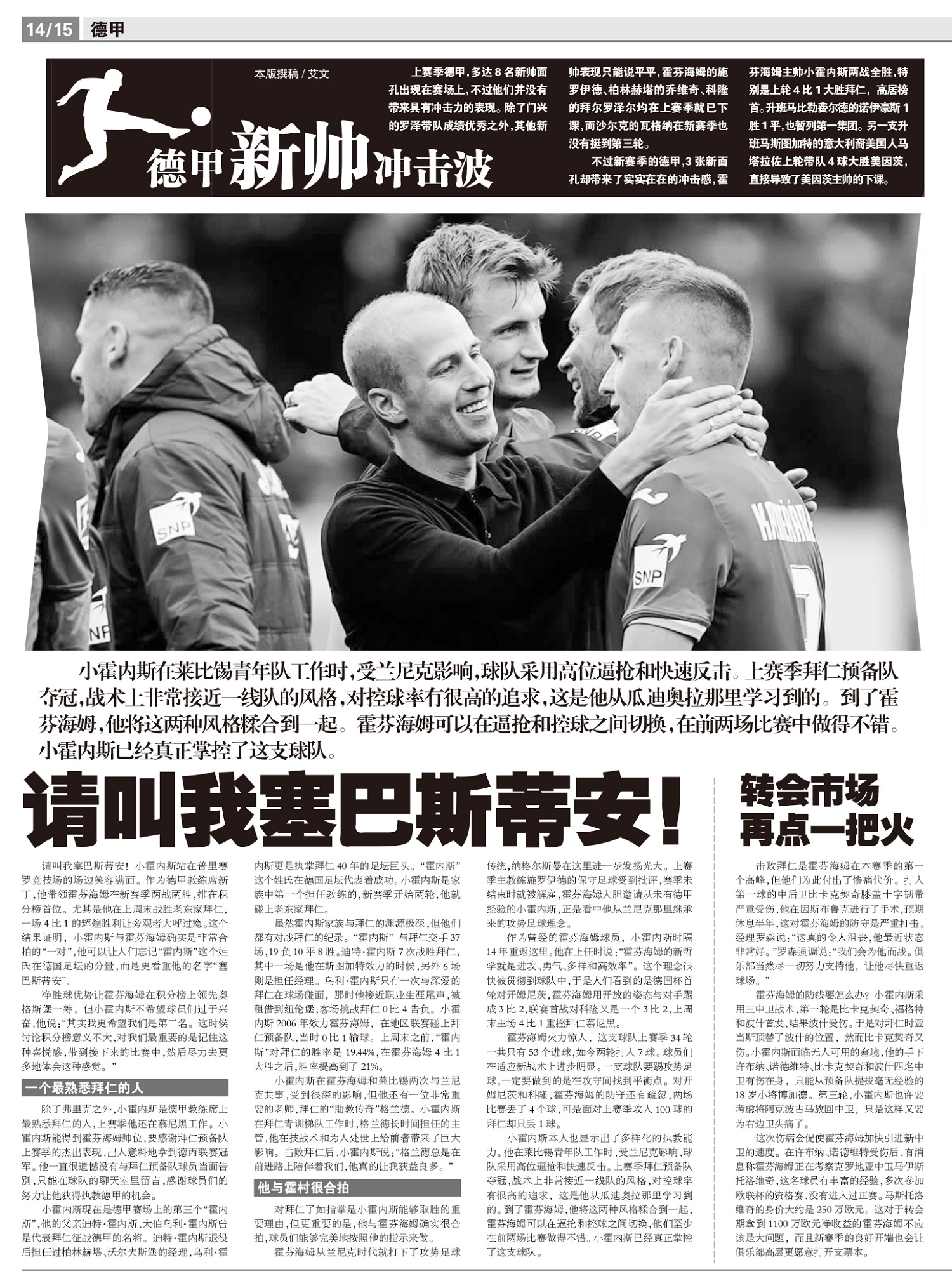 前两轮不败,这让他们排在积分榜第6位。更难得的是,诺伊豪斯沿用了上赛季的433进攻战术,以快速短传配...