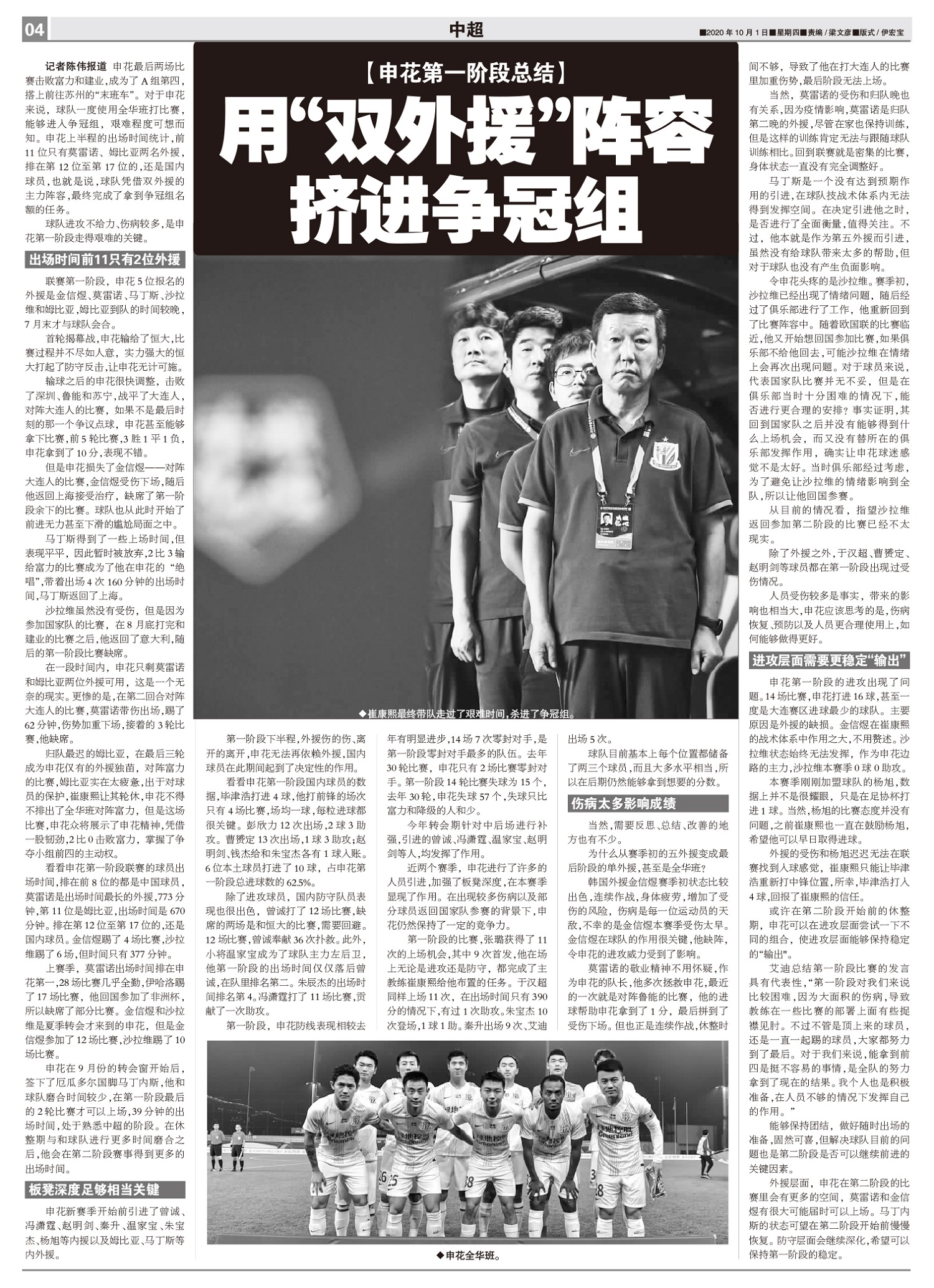 申花最后两场比赛击败富力和建业,成为了A组第四,搭上前往苏州的“末班车”。对于申花来说,球队一度使用...