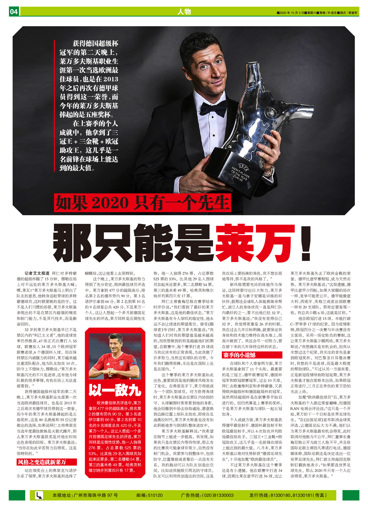 获得德国超级杯冠军的第二天晚上,莱万多夫斯基职业生涯第一次当选欧洲最佳球员,也是在2013年之后再次...