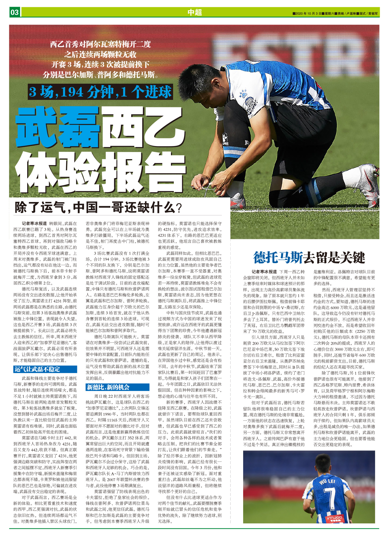 武磊西乙体验报告:除了运气,中国一哥还缺什么?