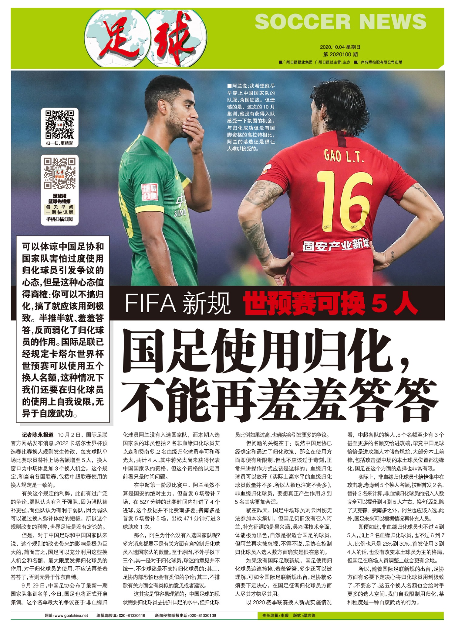 【封面报道】国足使用归化,不能再羞羞答答;【要闻】“巴西国脚时代”一去不返;【专题】豪门内战,先立规矩;吵归吵还要争分夺秒;【足球天下】当梅西遇上“梅西”;