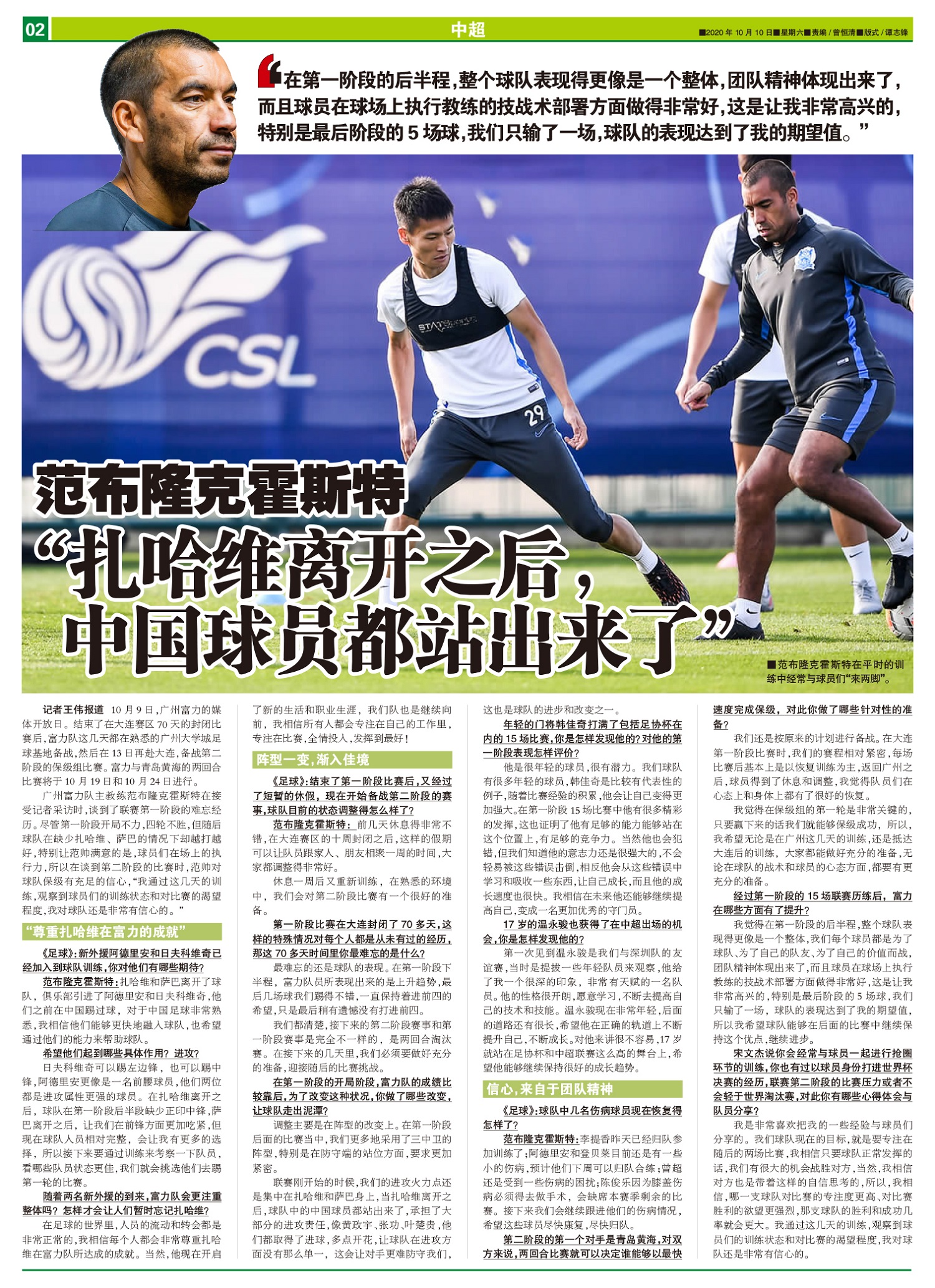 范布隆克霍斯特:“扎哈维离开之后, 中国球员都站出来了”