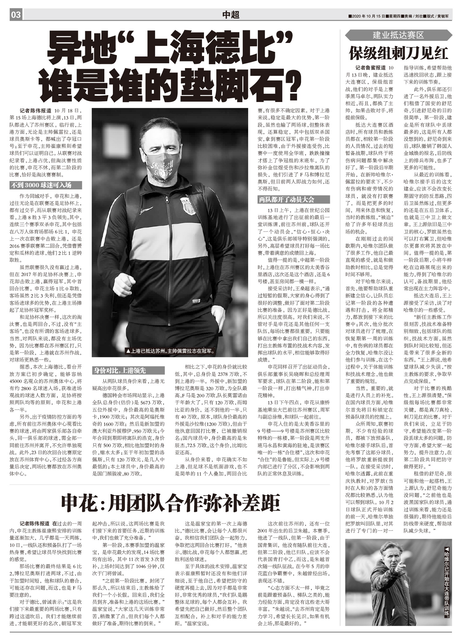 10月18日,第15场上海德比将上演,13日,两队都进入了苏州赛区。临行前,上港方面,无论是主帅佩雷...