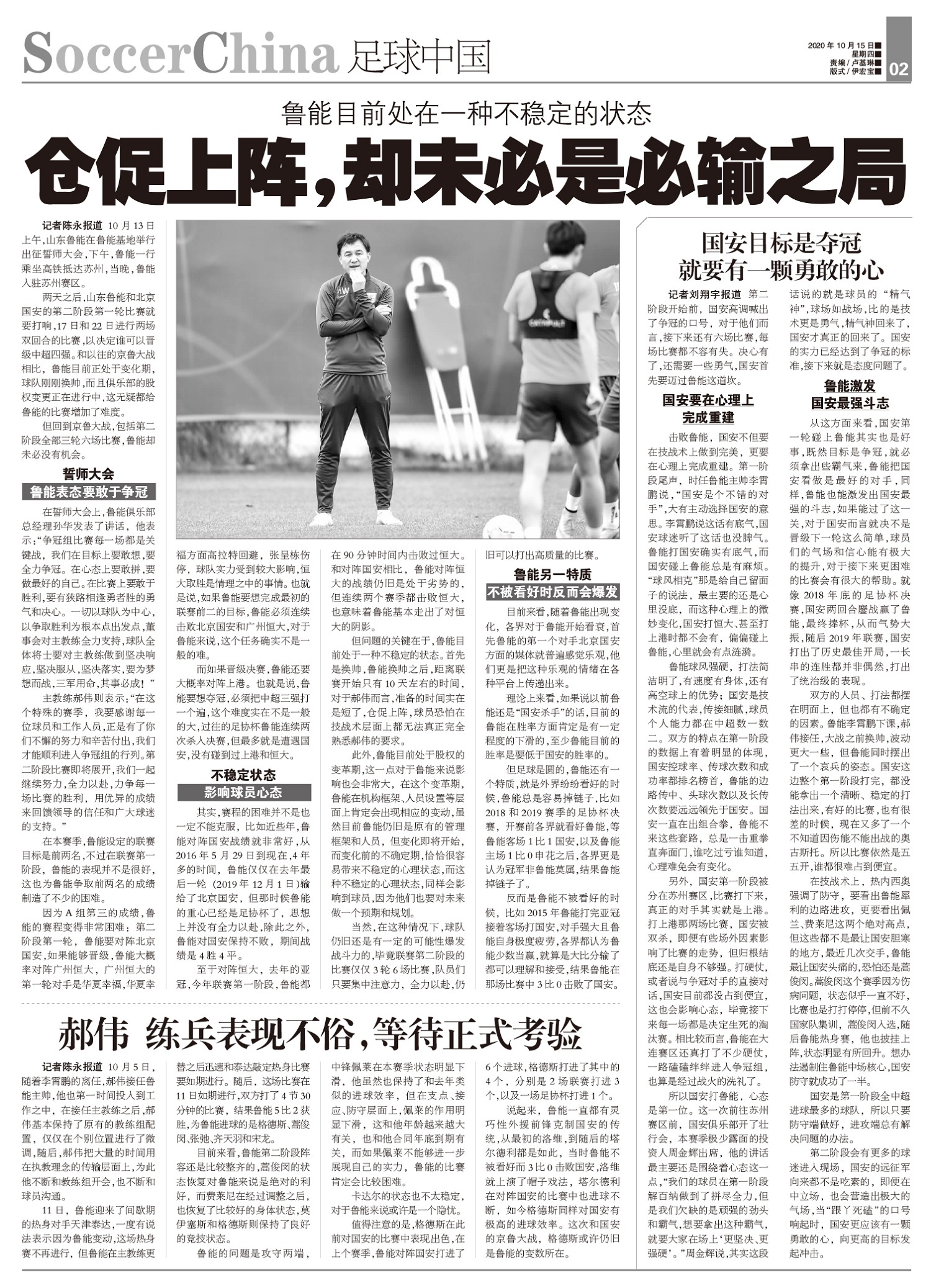 国安目标是夺冠就要有一颗勇敢的心