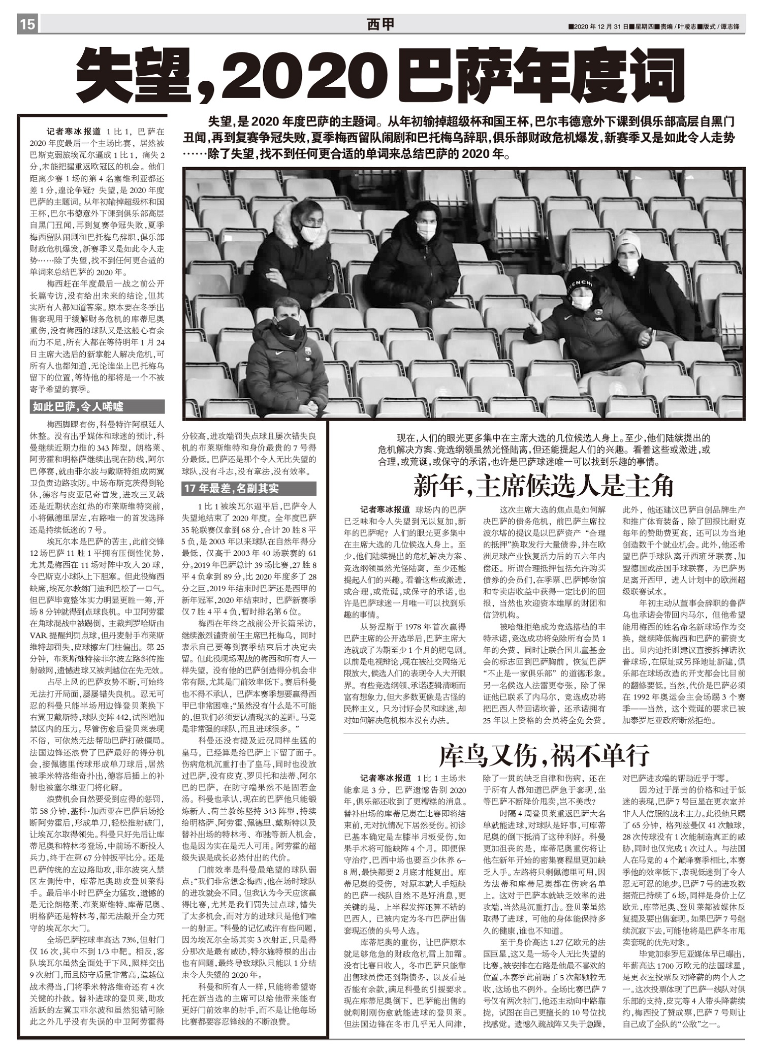 失望,是2020年度巴萨的主题词。从年初输掉超级杯和国王杯,巴尔韦德意外下课到俱乐部高层自黑门丑闻,...