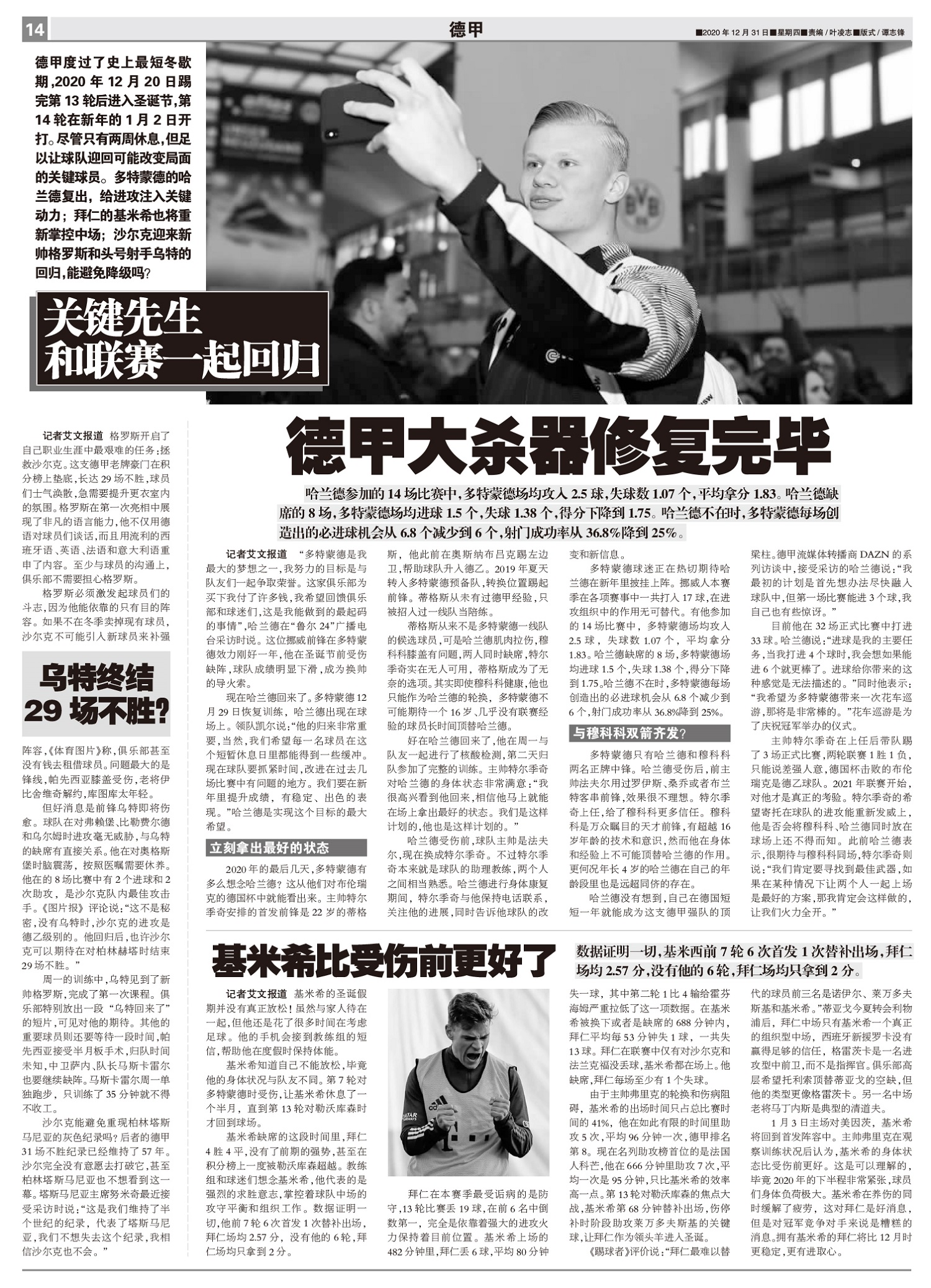 德甲度过了史上最短冬歇期,2020年12月20日踢完第13轮后进入圣诞节,第14轮在新年的1月2日开...
