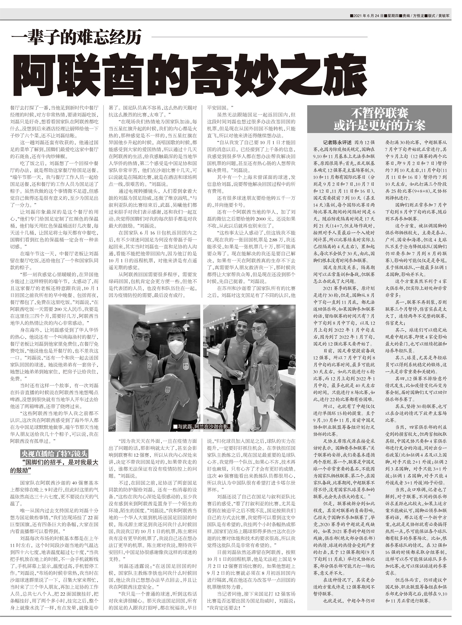 国家队6月17日结束40强赛后,已从阿联酋返回苏州进行隔离,解除隔离后国脚们将返回各自俱乐部队,以备...