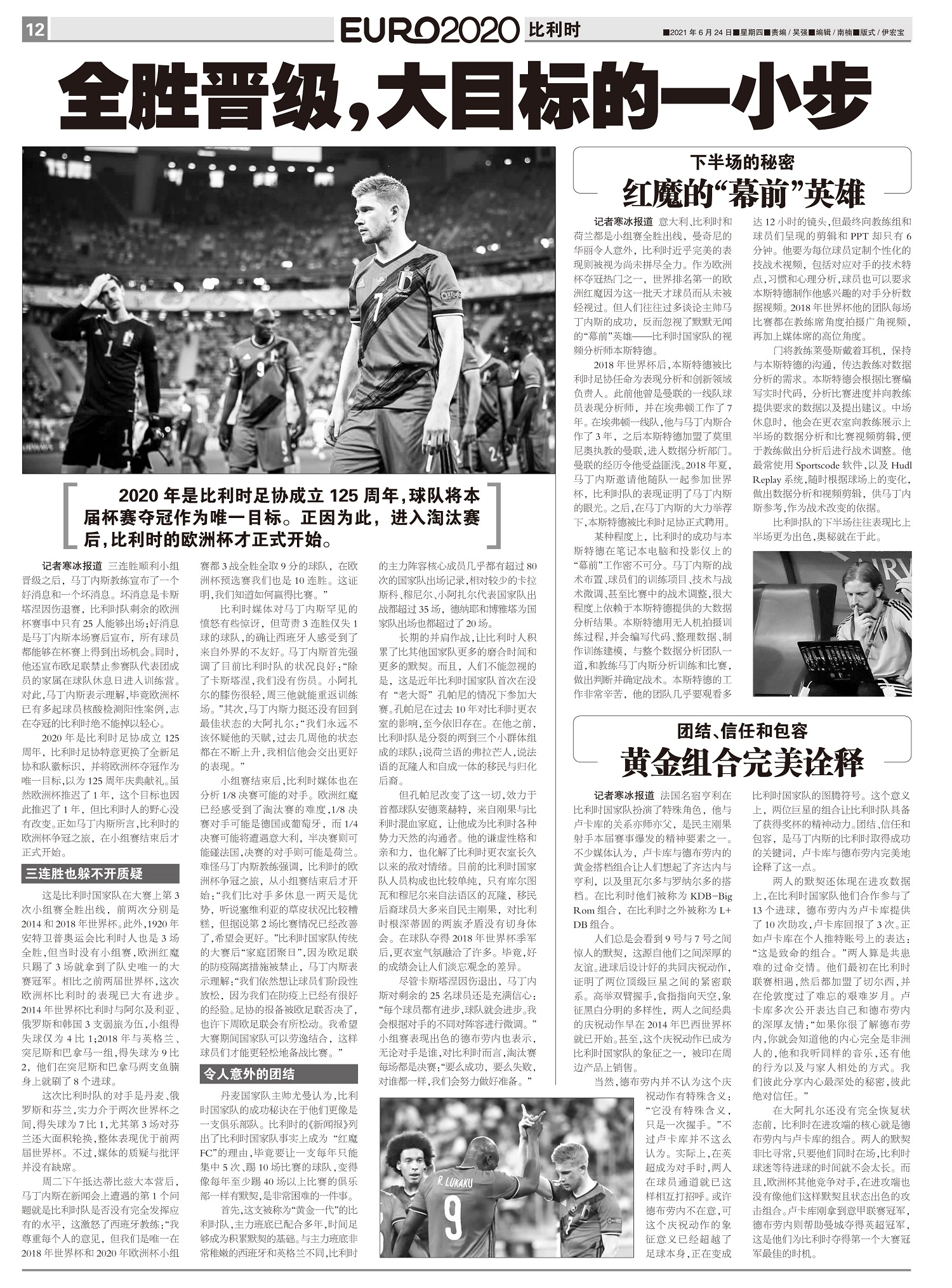 2020年是比利时足协成立125周年,球队将本届杯赛夺冠作为唯一目标。正因为此,进入淘汰赛后,比利时...