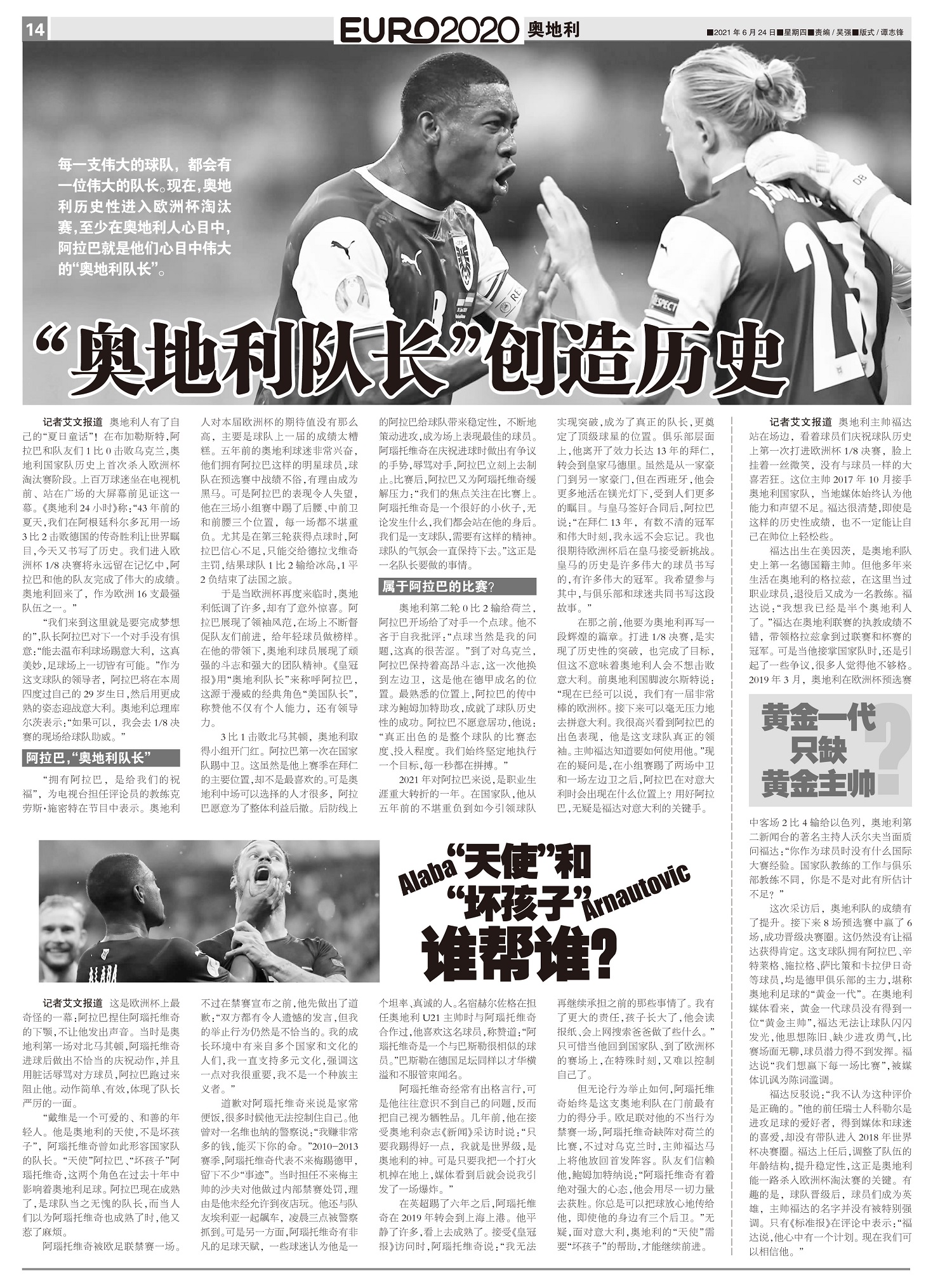 每一支伟大的球队,都会有一位伟大的队长。现在,奥地利历史性进入欧洲杯淘汰赛,至少在奥地利人心目中,阿...