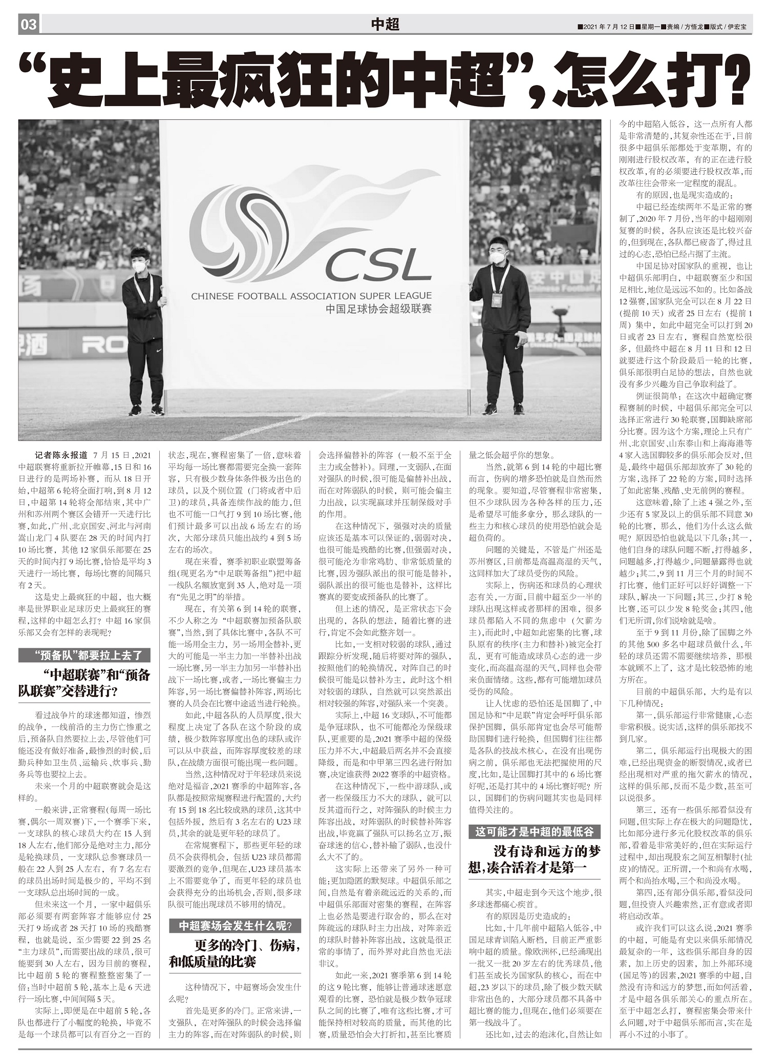 7月15日,2021中超联赛将重新拉开帷幕,15日和16日进行的是两场补赛,而从18日开始,中超第6...
