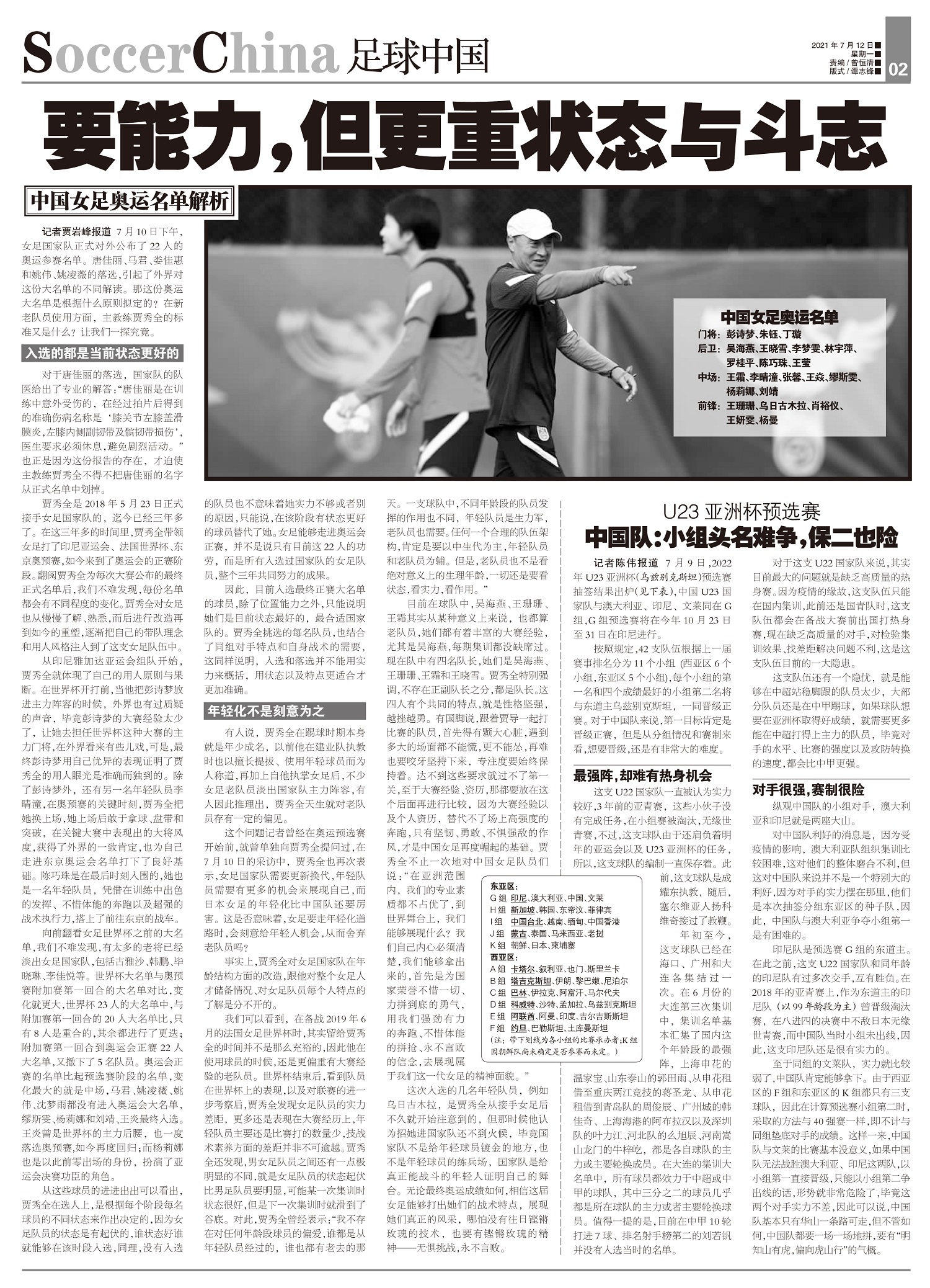 7月10日下午,女足国家队正式对外公布了22人的奥运参赛名单。唐佳丽、马君、娄佳惠和姚伟、姚凌薇的落...