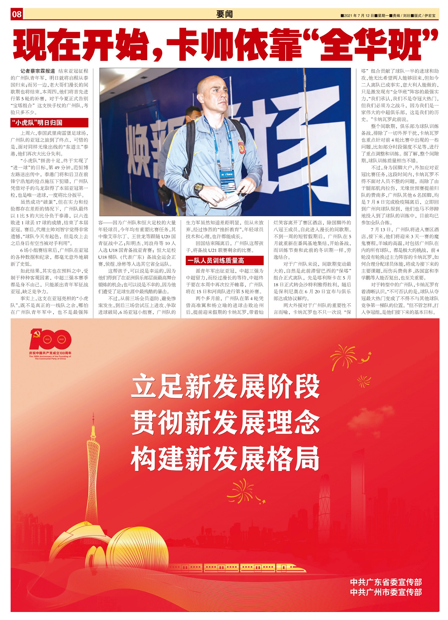 结束亚冠征程的广州队青年军,明日就将启程从泰国归来;而另一边,老大哥们漫长的间歇期也将结束,本周四...