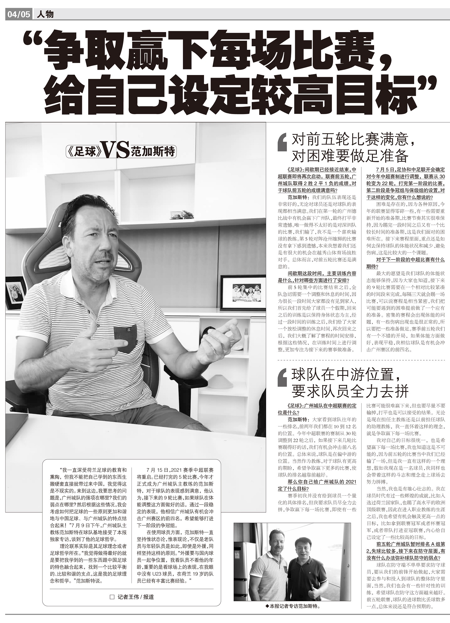 《足球》VS范加斯特“争取赢下每场比赛,给自己设定较高目标”