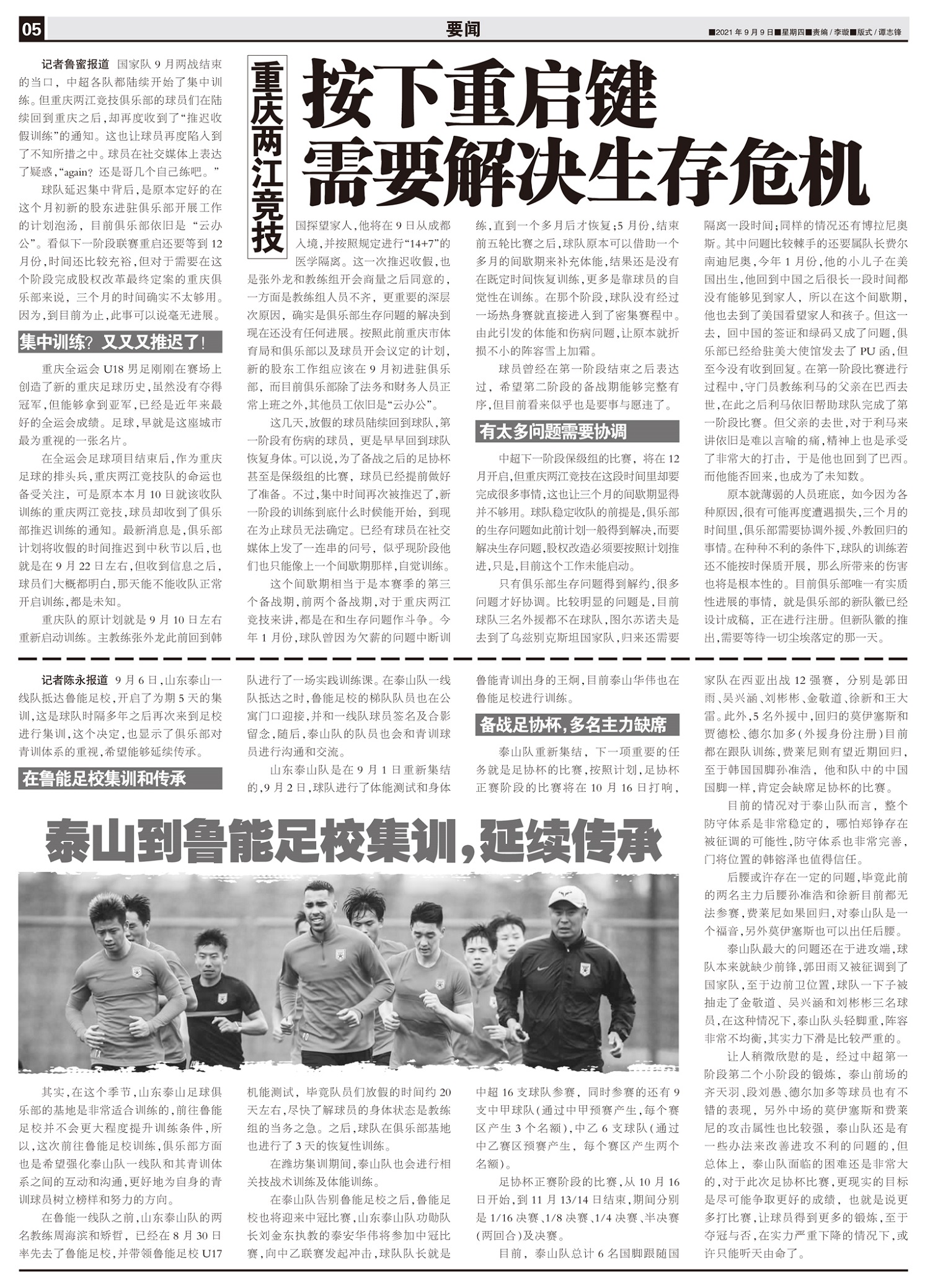 国家队9月两战结束的当口,中超各队都陆续开始了集中训练。但重庆两江竞技俱乐部的球员们在陆续回到重庆之...