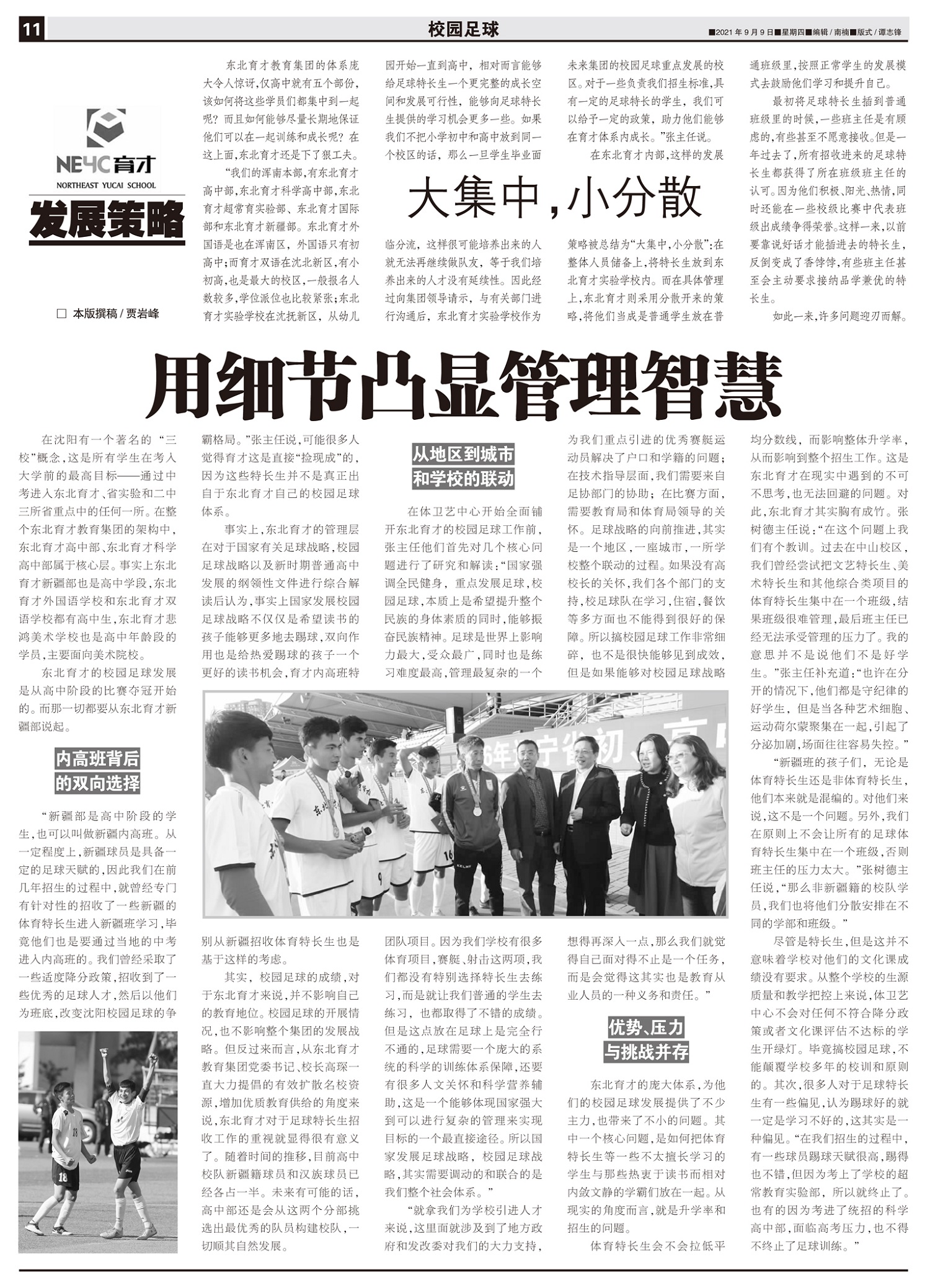 发展校园足球,让足球回归教育的宗旨,具体到每个地方、每所学校,都有不同的理解,就像不同的企业文化,也...