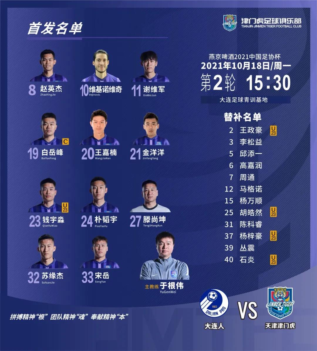 本场比赛,津门虎延续了上一轮和北体大交手时的首发阵容,维基诺维奇依旧出现在防线靠前的位置,对手大连人则是派上了全华班。原本从纸面实力来讲,津门虎可能略占优势,不过比赛的场面和进程,并没有朝着他们的理想状态发展。