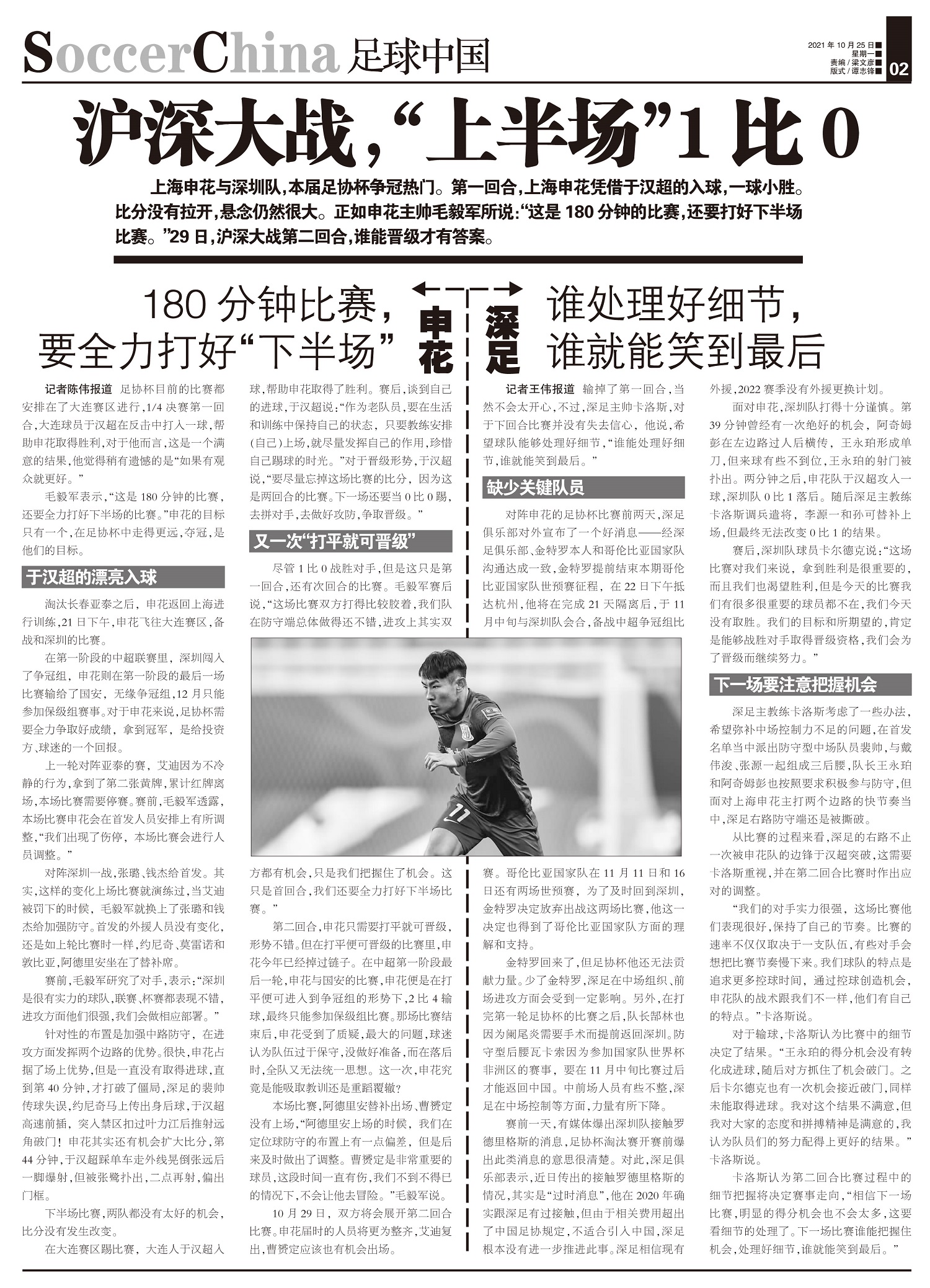 上海申花与深圳队,本届足协杯争冠热门。第一回合,上海申花凭借于汉超的入球,一球小胜。比分没有拉开,悬...