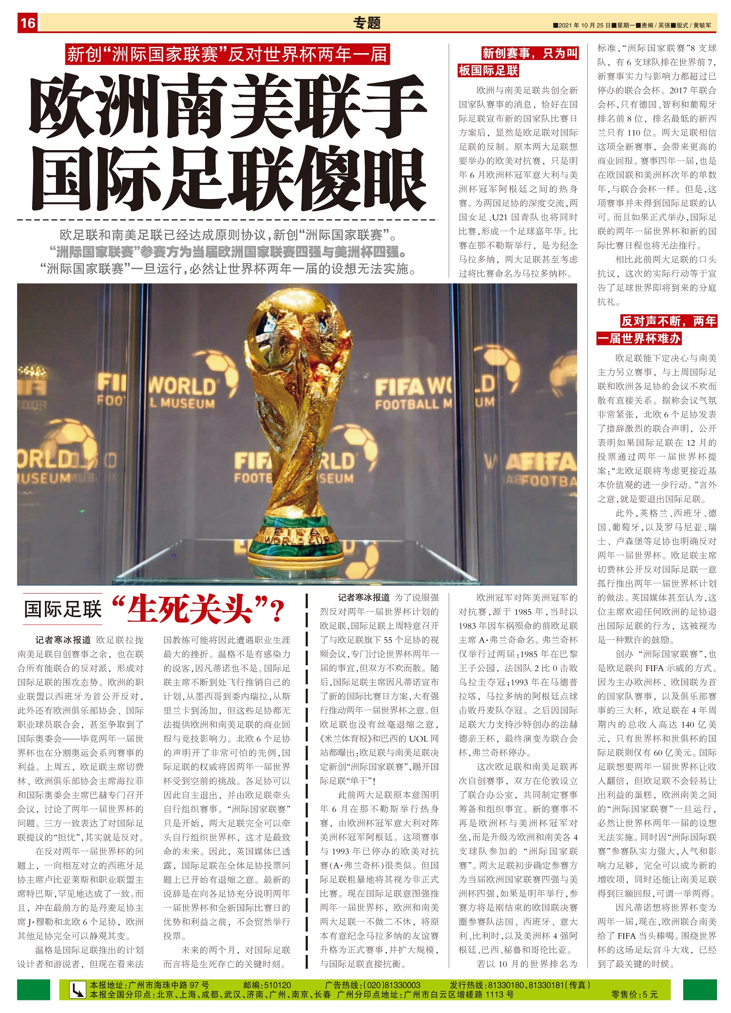 欧足联和南美足联已经达成原则协议,新创“洲际国家联赛”。“洲际国家联赛”参赛方为当届欧洲国家联赛四强...